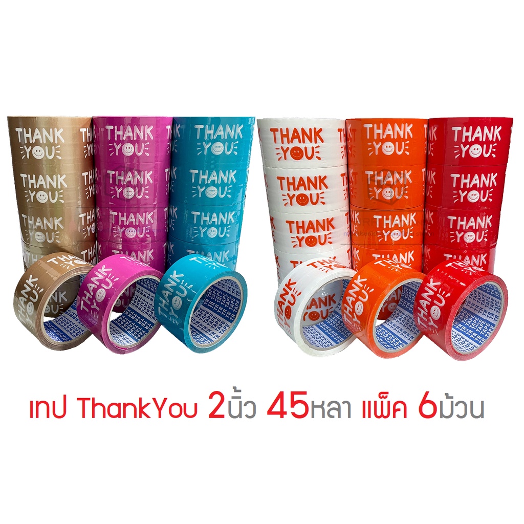 TR Tape เทป Thank You กว้าง 2นิ้ว ยาว 45หลา แพ็ค 6ม้วน สุดคุ้ม