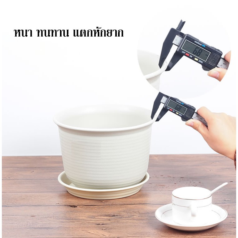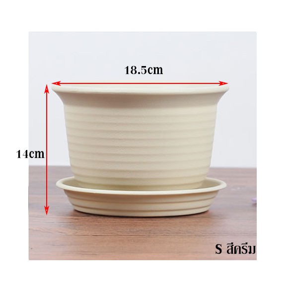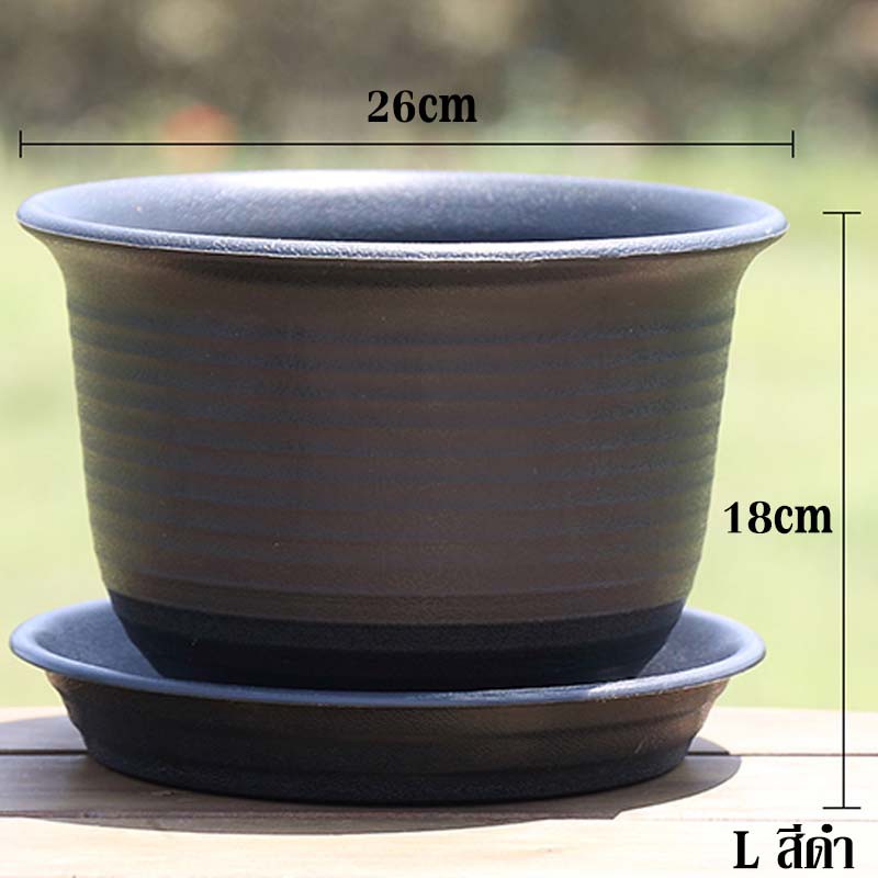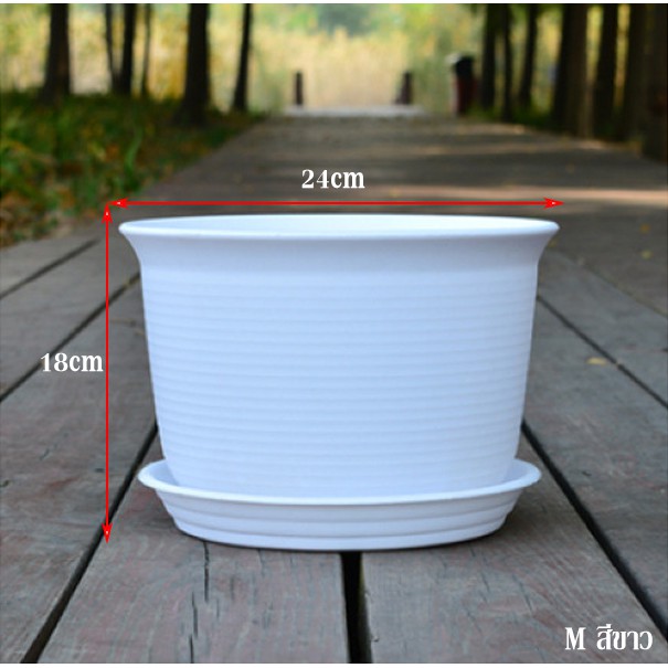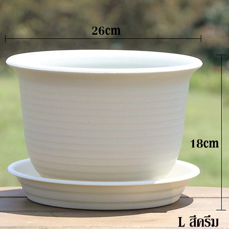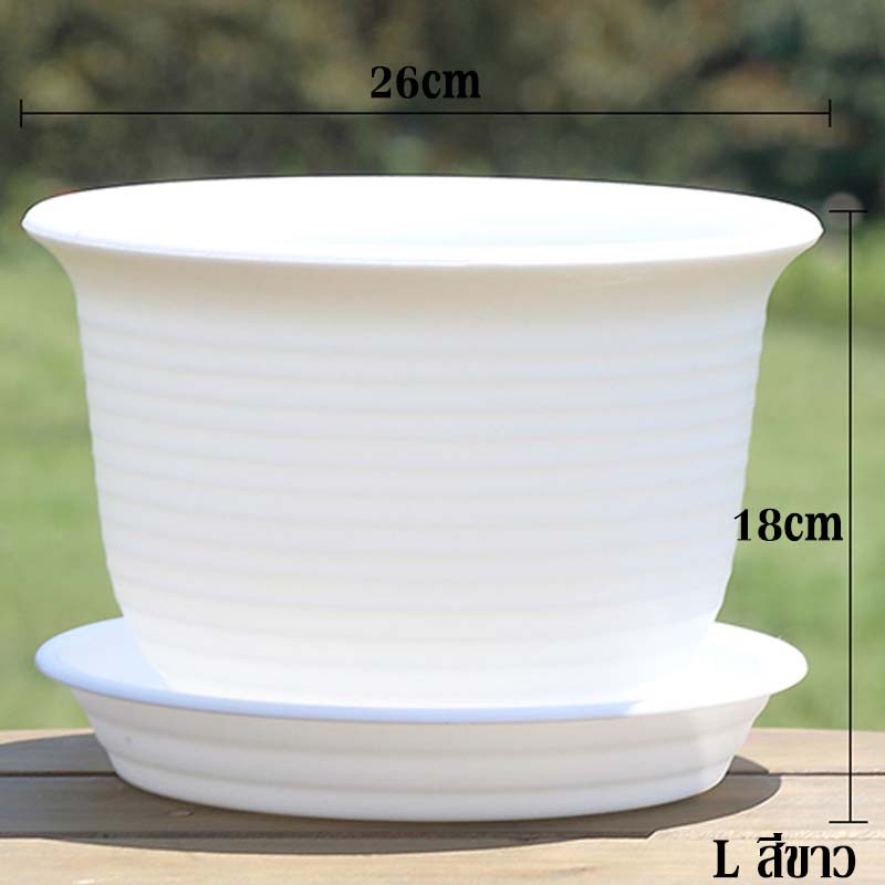 กระถางต้นไม้ กระถางต้นไม้พลาสติก กระถางทรงกลมพร้อมจานรอง รุ่น 5343
