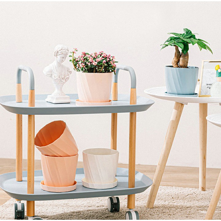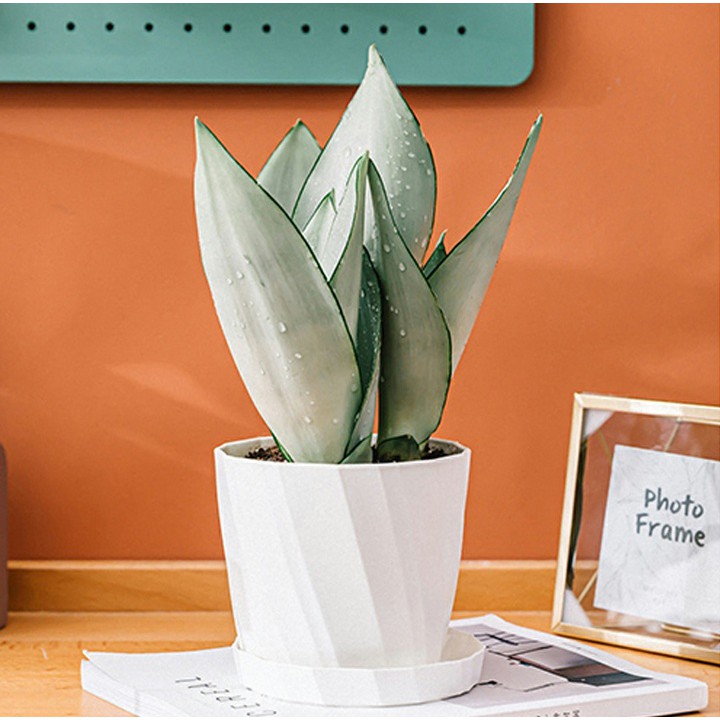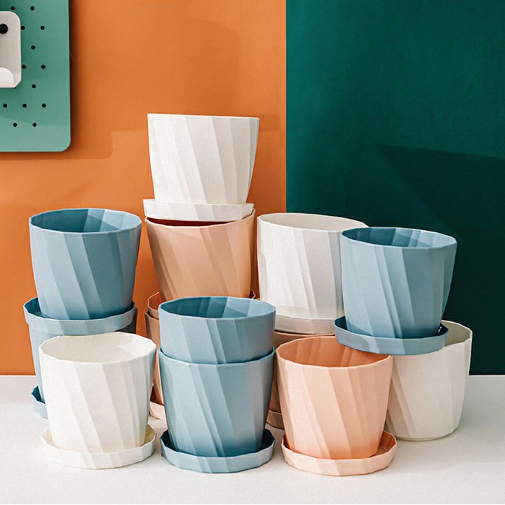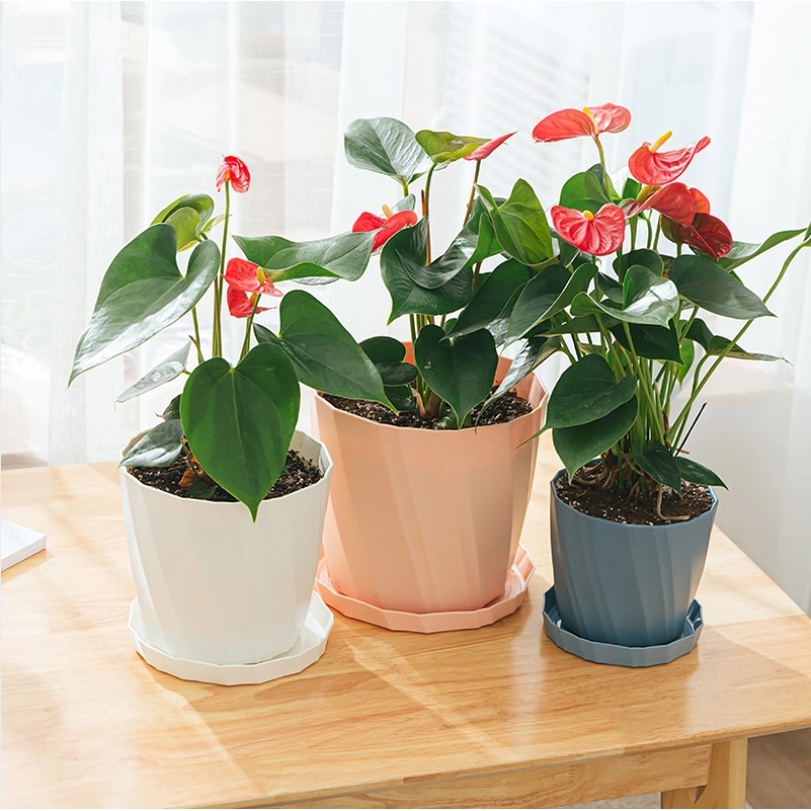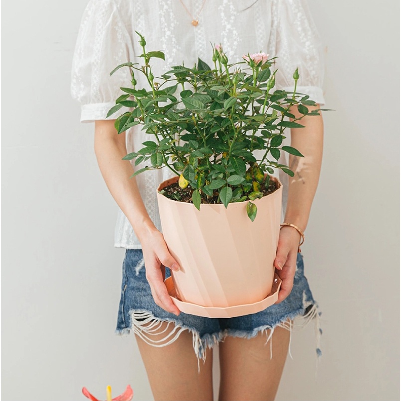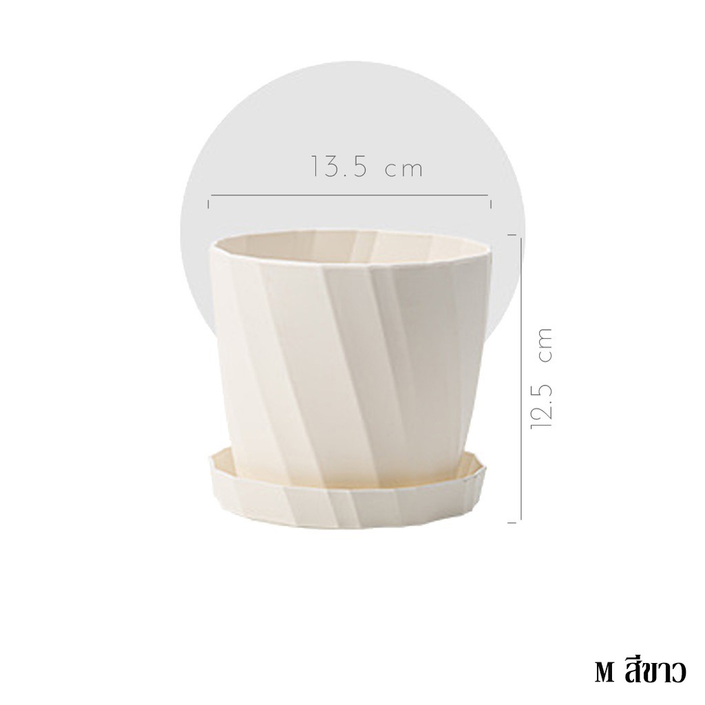 กระถางต้นไม้พร้อมถาดรอง กระถางดอกไม้เล็กตั้งโต๊ะ รุ่น 5222