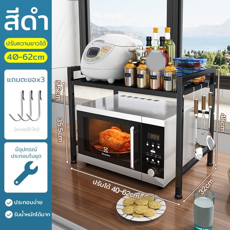 ชั้นวางบนไมโครเวฟ ปรับขนาดได้ ชั้นวางห้องครัว วางไมโครเวฟ วางของ เครื่องปรุง