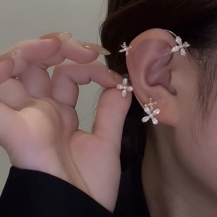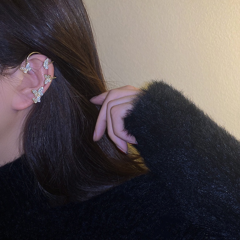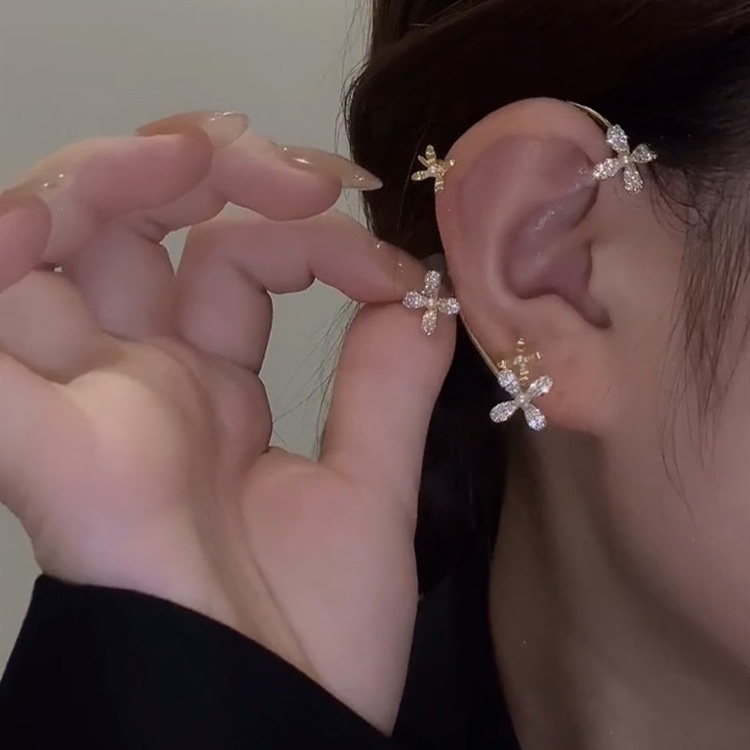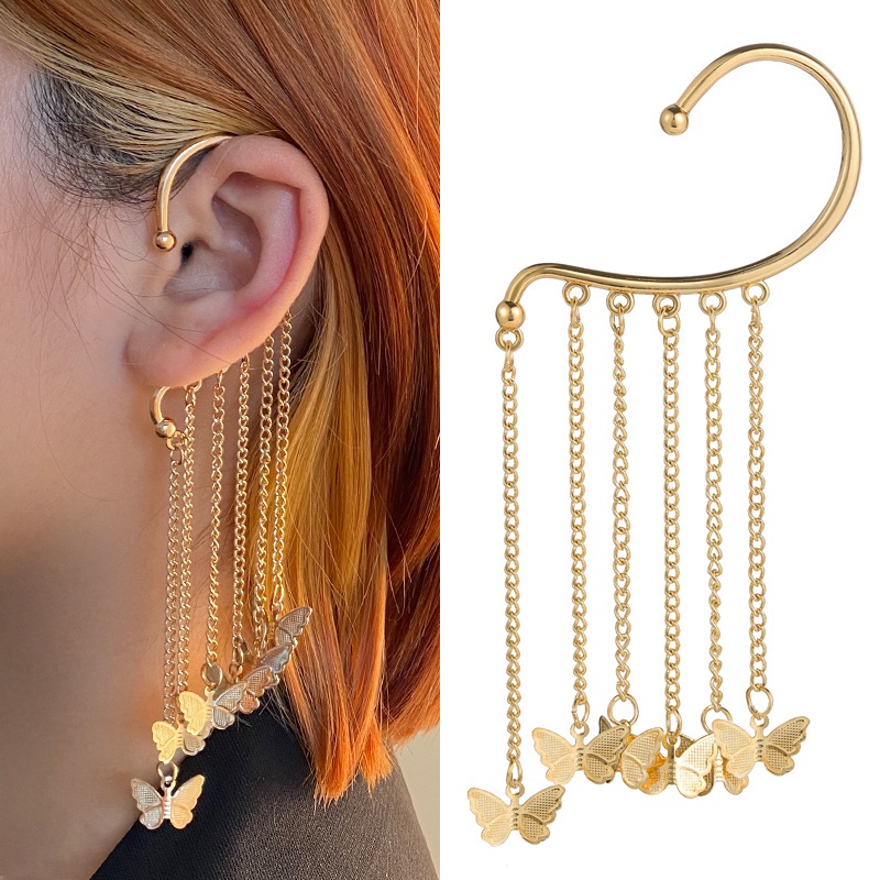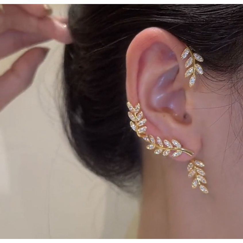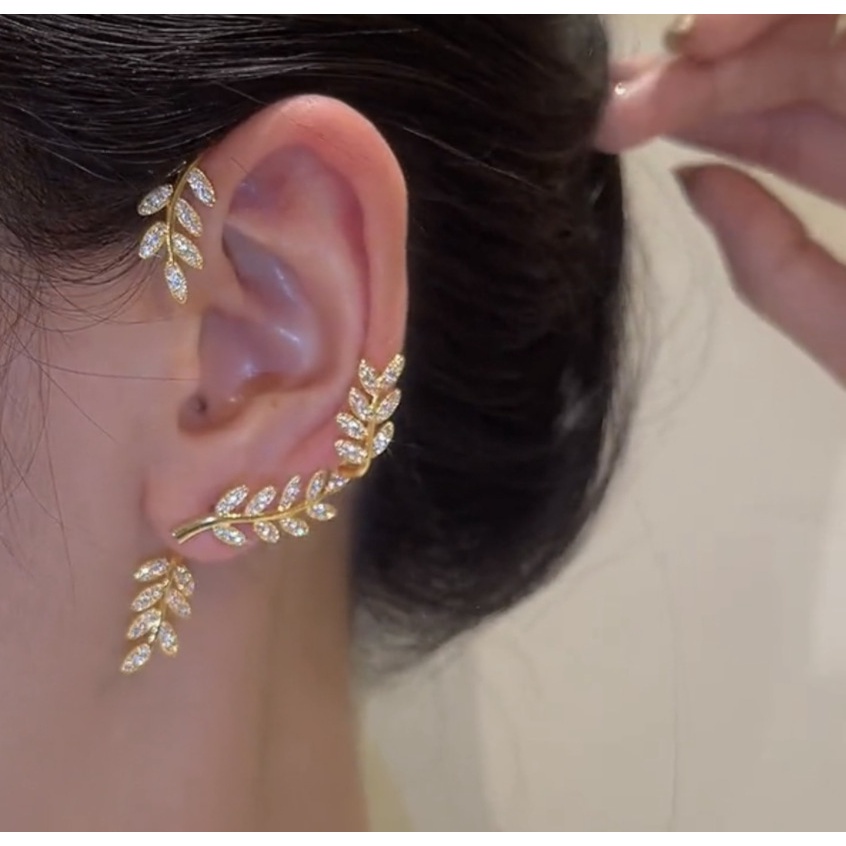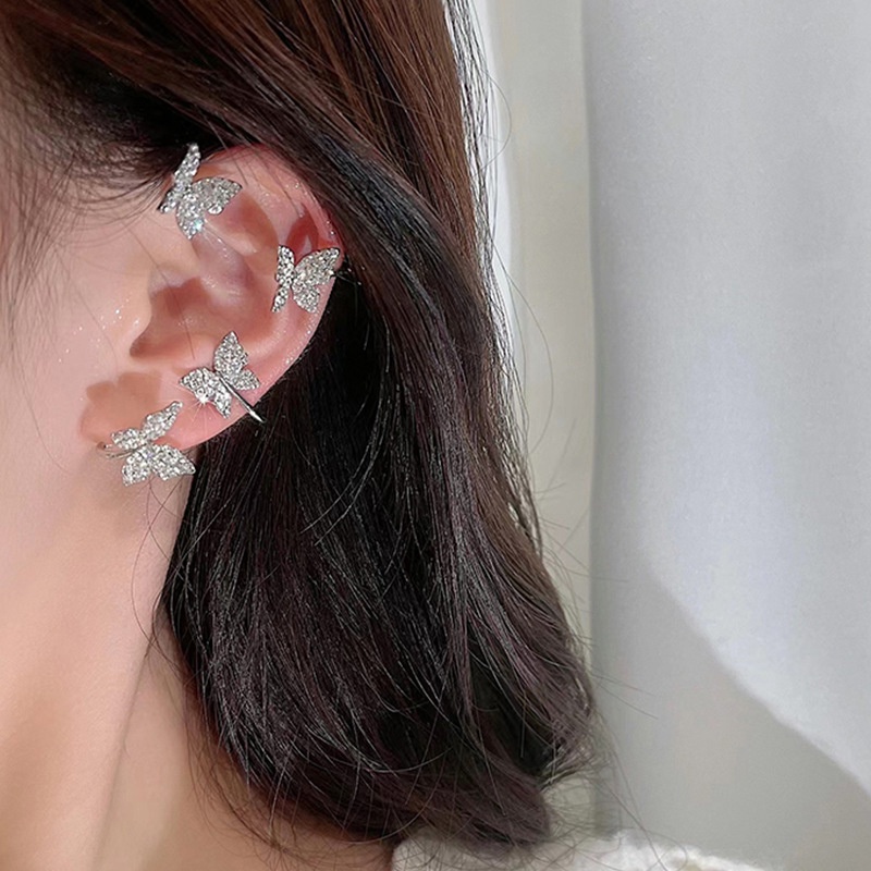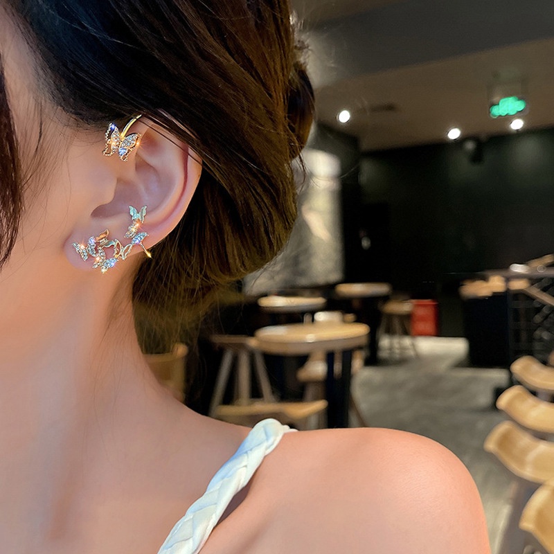 เกาหลี คริสตัล ผีเสื้อ ดอกไม้ ใบไม้ โบว์ คลิป ต่างหู มุก ทอง เงิน โซ่ พู่ ต่างหู คลิป สําหรับผู้หญิง เครื่องประดับ