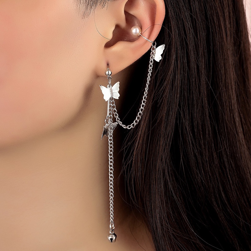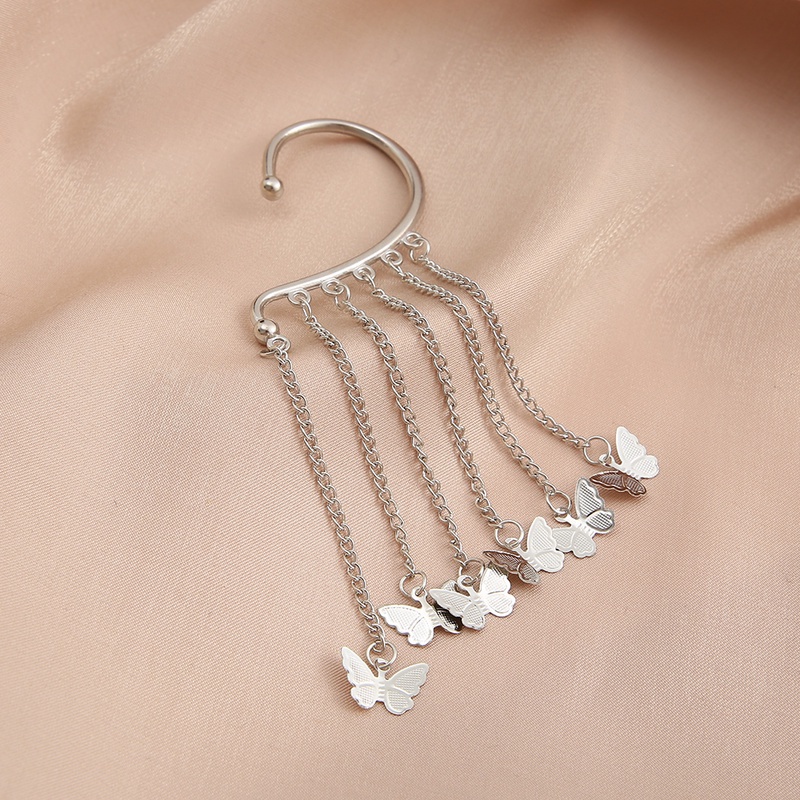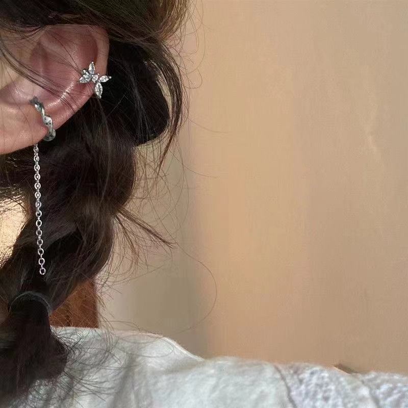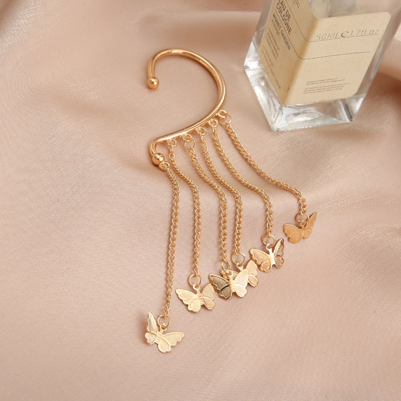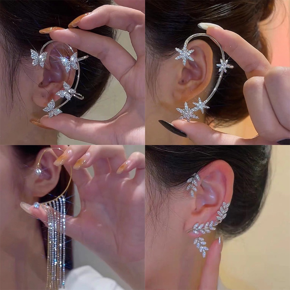 เครื่องประดับ ต่างหูโซ่คริสตัล รูปผีเสื้อ ดาว ดอกไม้ โบว์ สีทอง สีเงิน หรูหรา สําหรับผู้หญิง