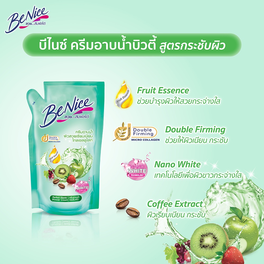 BeNice บีไนซ์ผลิตภัณฑ์ครีมอาบน้ำ สูตรกระชับผิว ถุงเติม 400 มล. x1