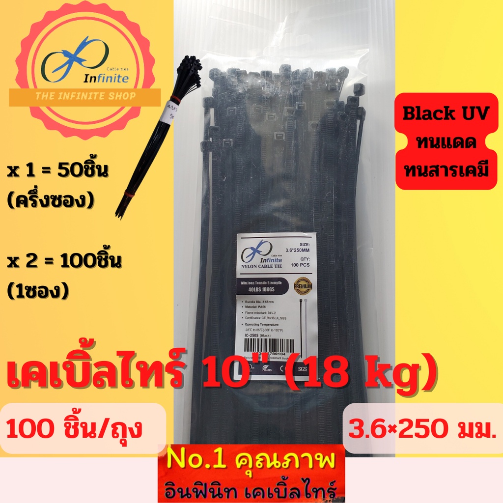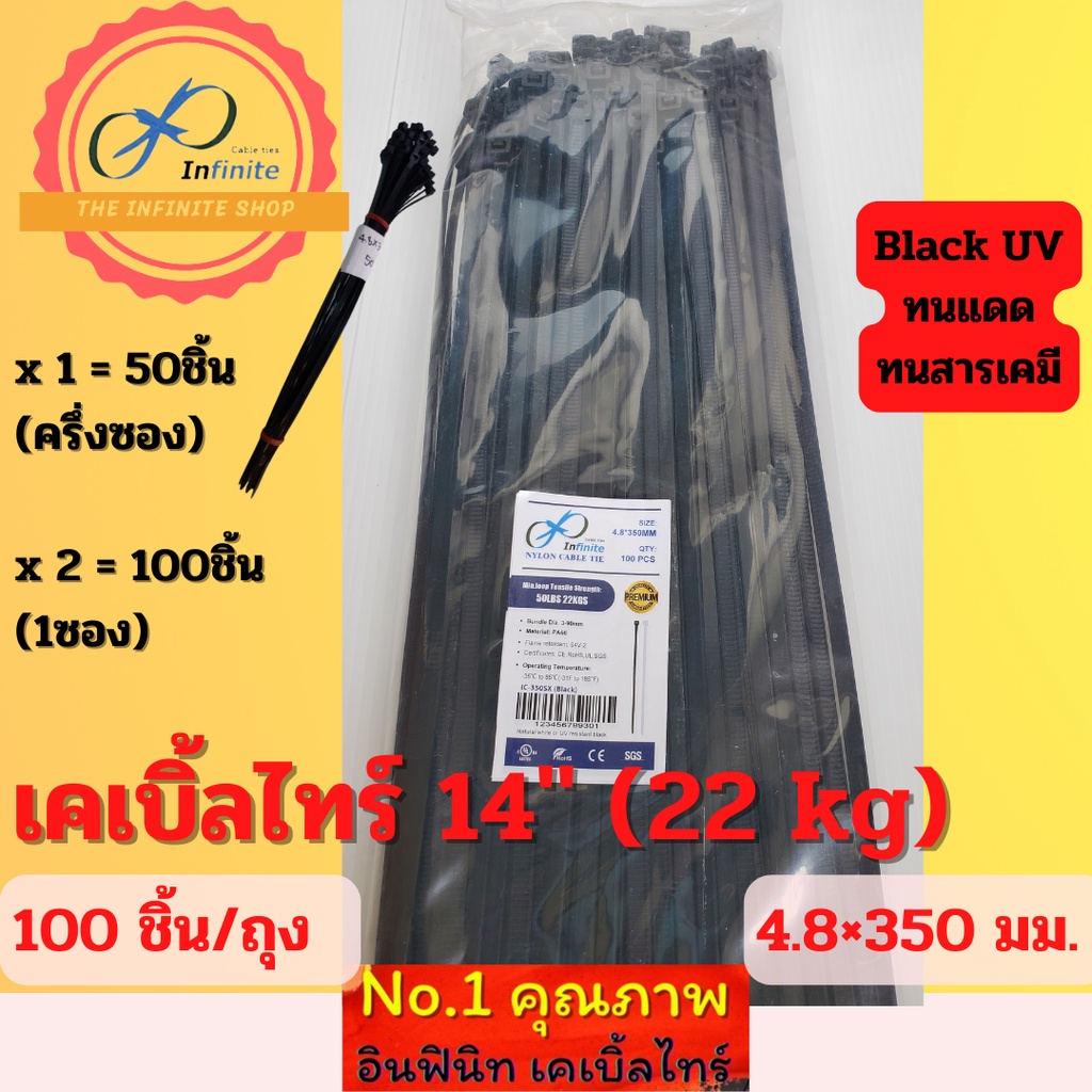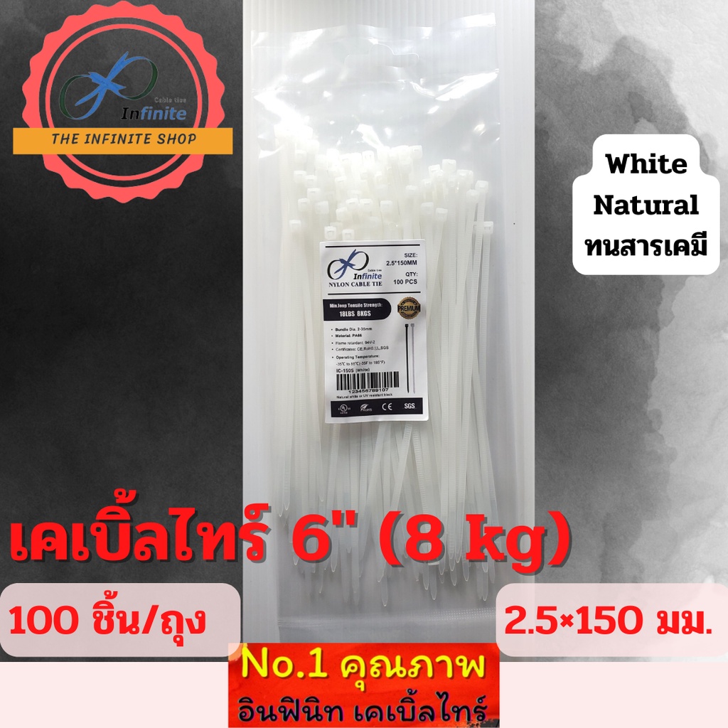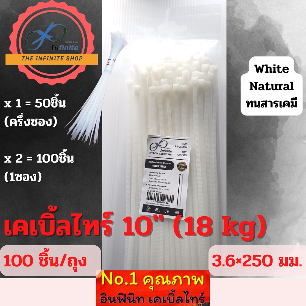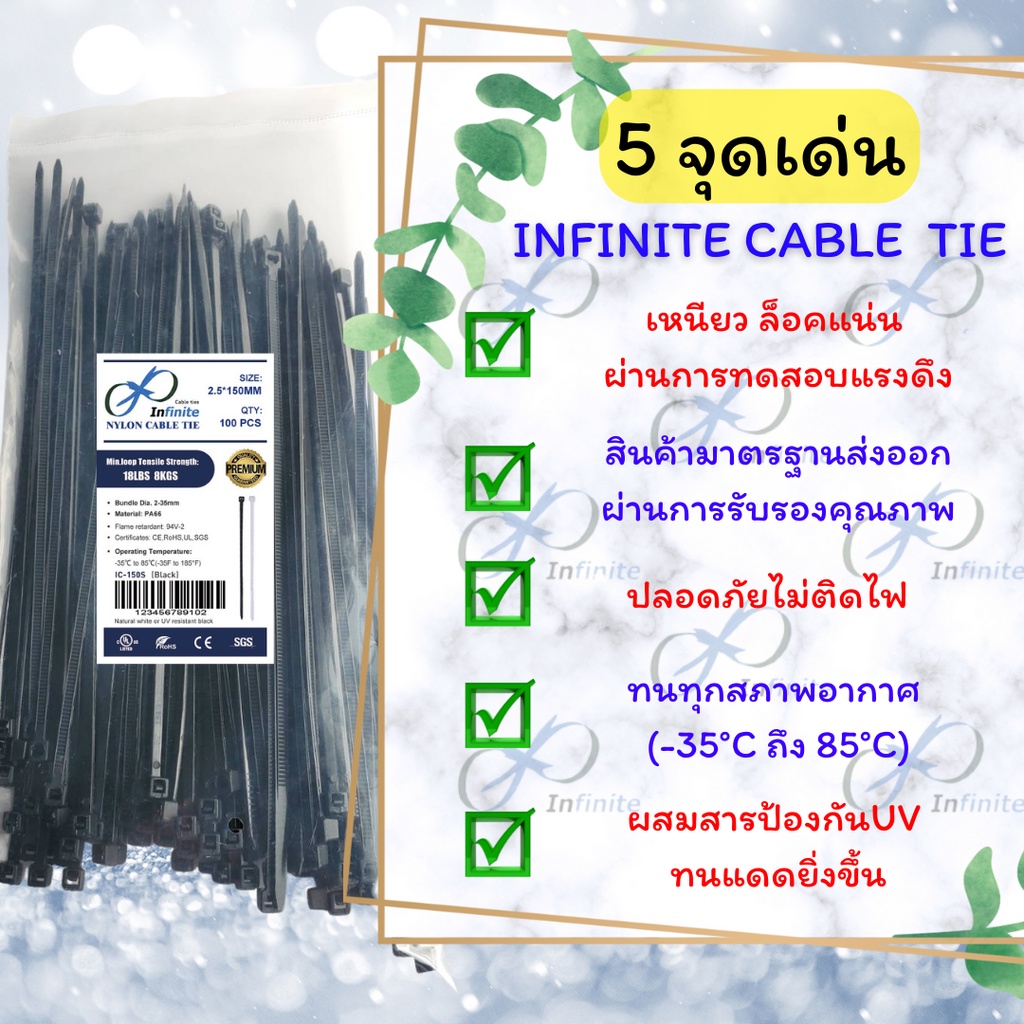 No.1คุณภาพ อินฟินิทเคเบิ้ลไทร์เกรดส่งออก 14/12/10/8/6/4นิ้ว แพค100เส้น ขาว/ดำ Cable tie หนวดกุ้ง สายรัดพลาสติก