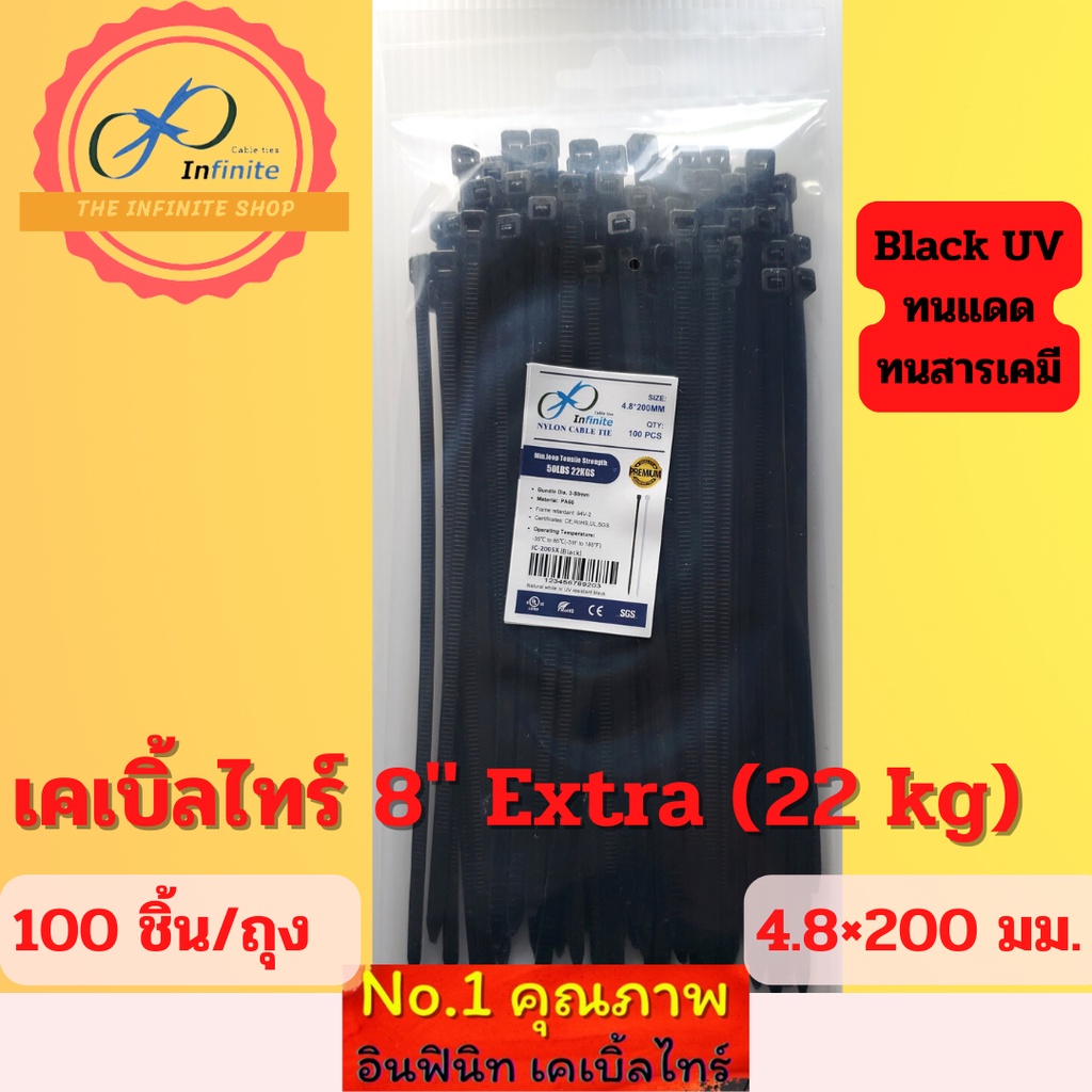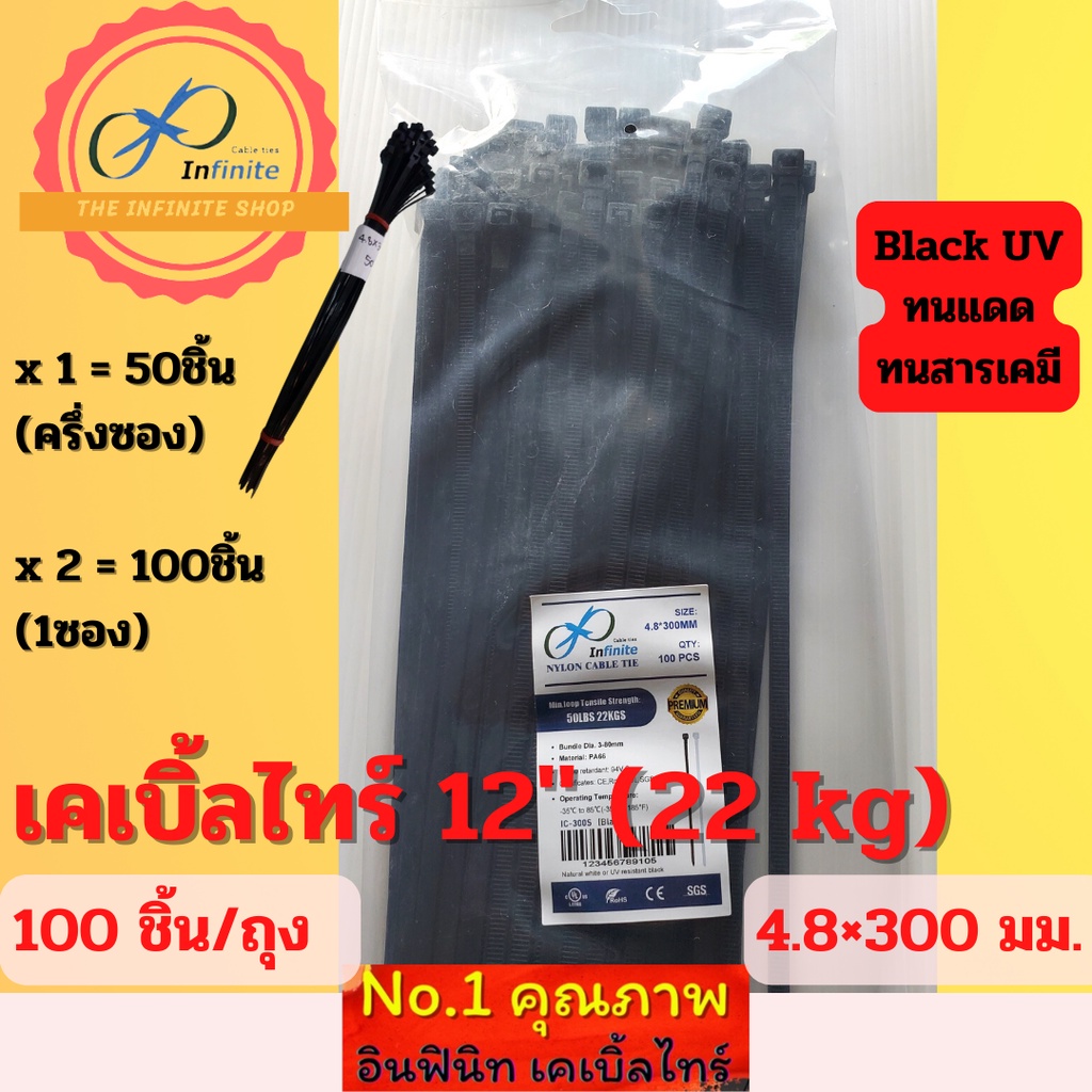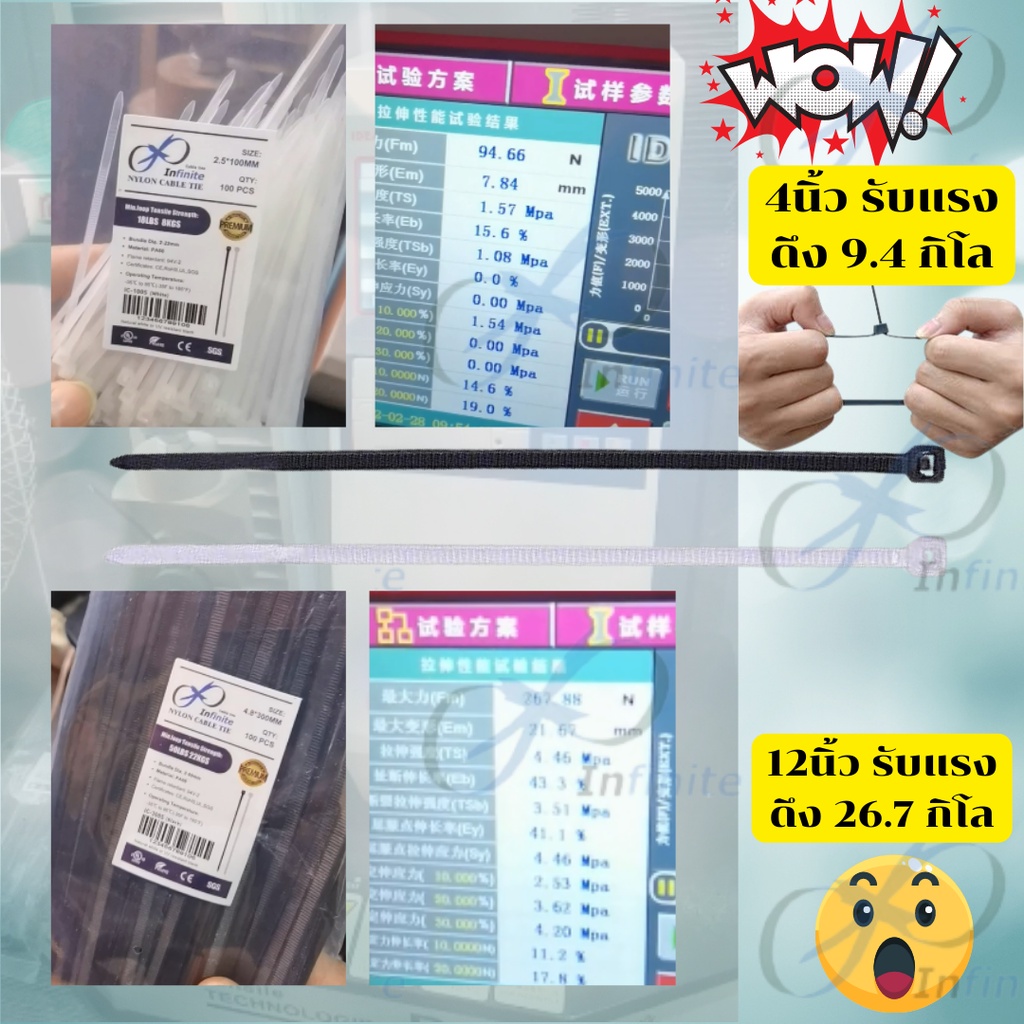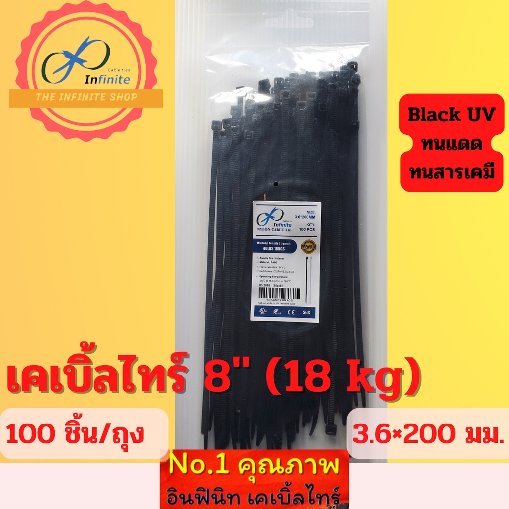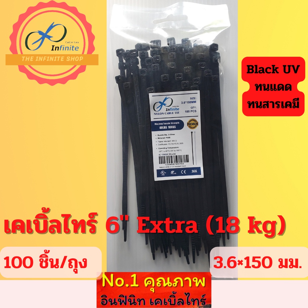 No.1คุณภาพ อินฟินิทเคเบิ้ลไทร์เกรดส่งออก 14/12/10/8/6/4นิ้ว แพค100เส้น ขาว/ดำ Cable tie หนวดกุ้ง สายรัดพลาสติก