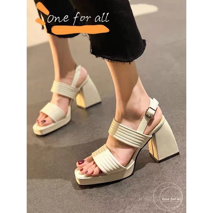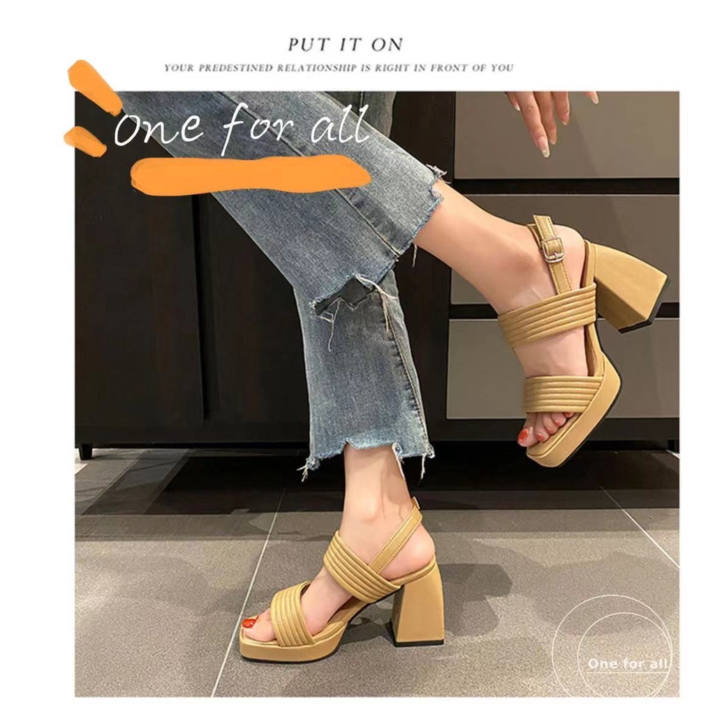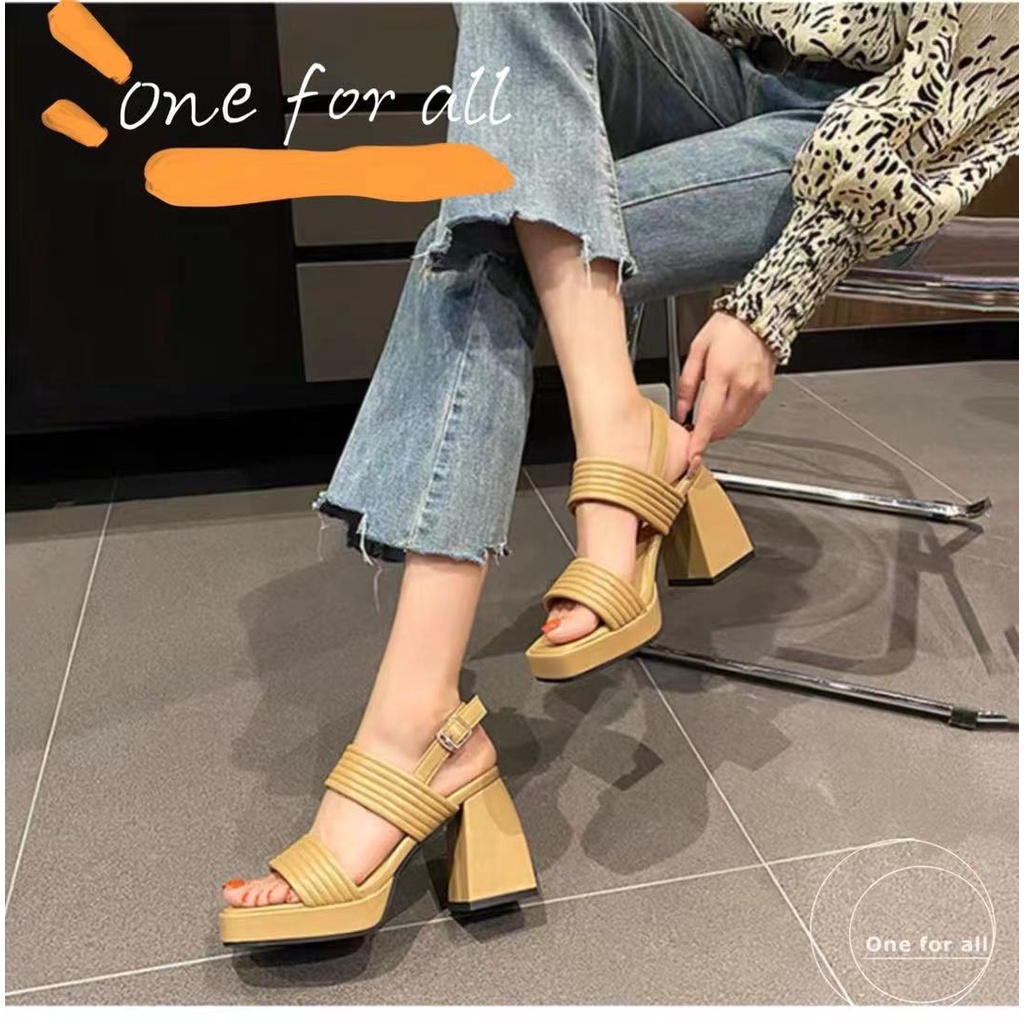 🎀พร้อมส่ง❣️TX284รองเท้าส้นสูง รองเท้าส้นหนา แบบเปิดเท้าสูง4นิ้ว