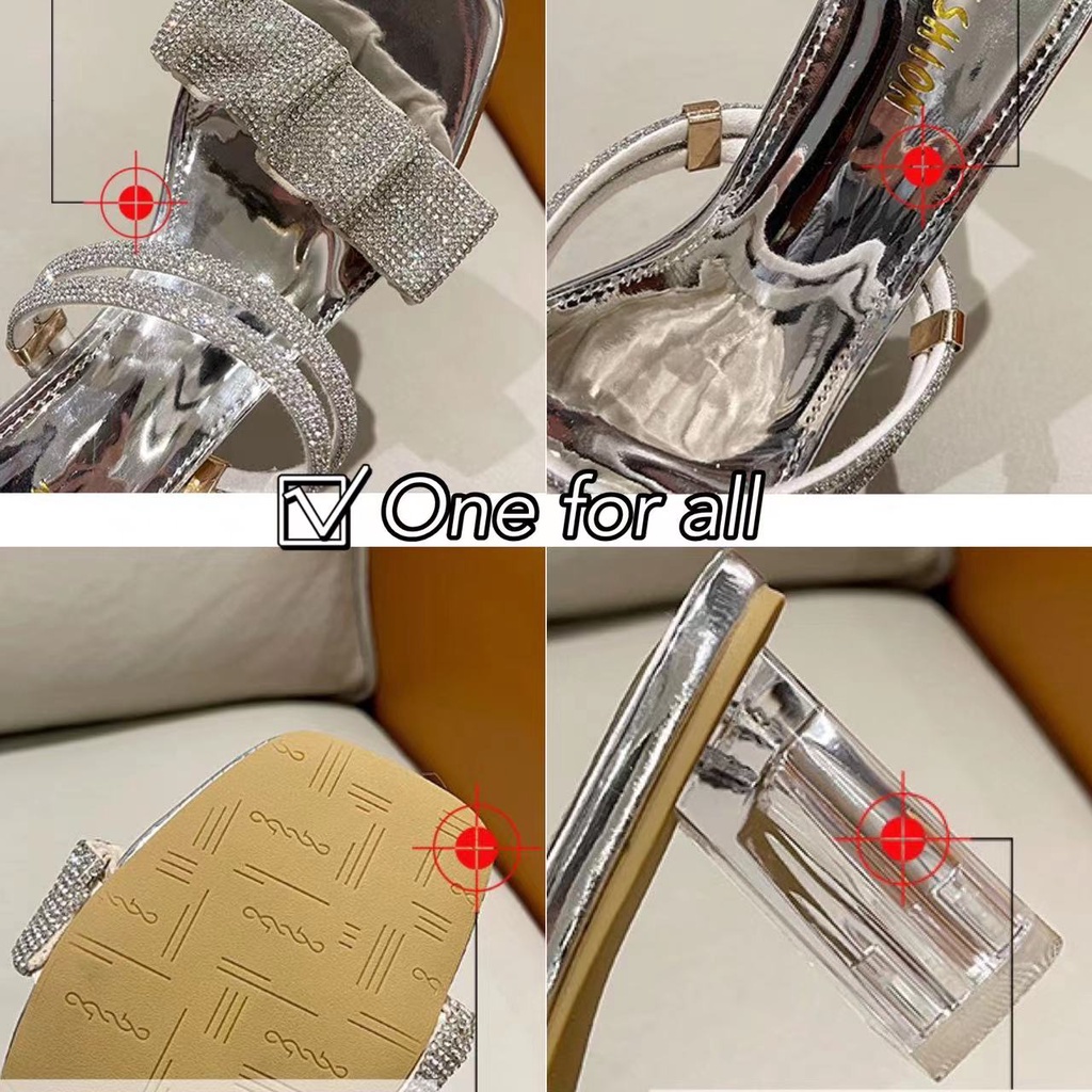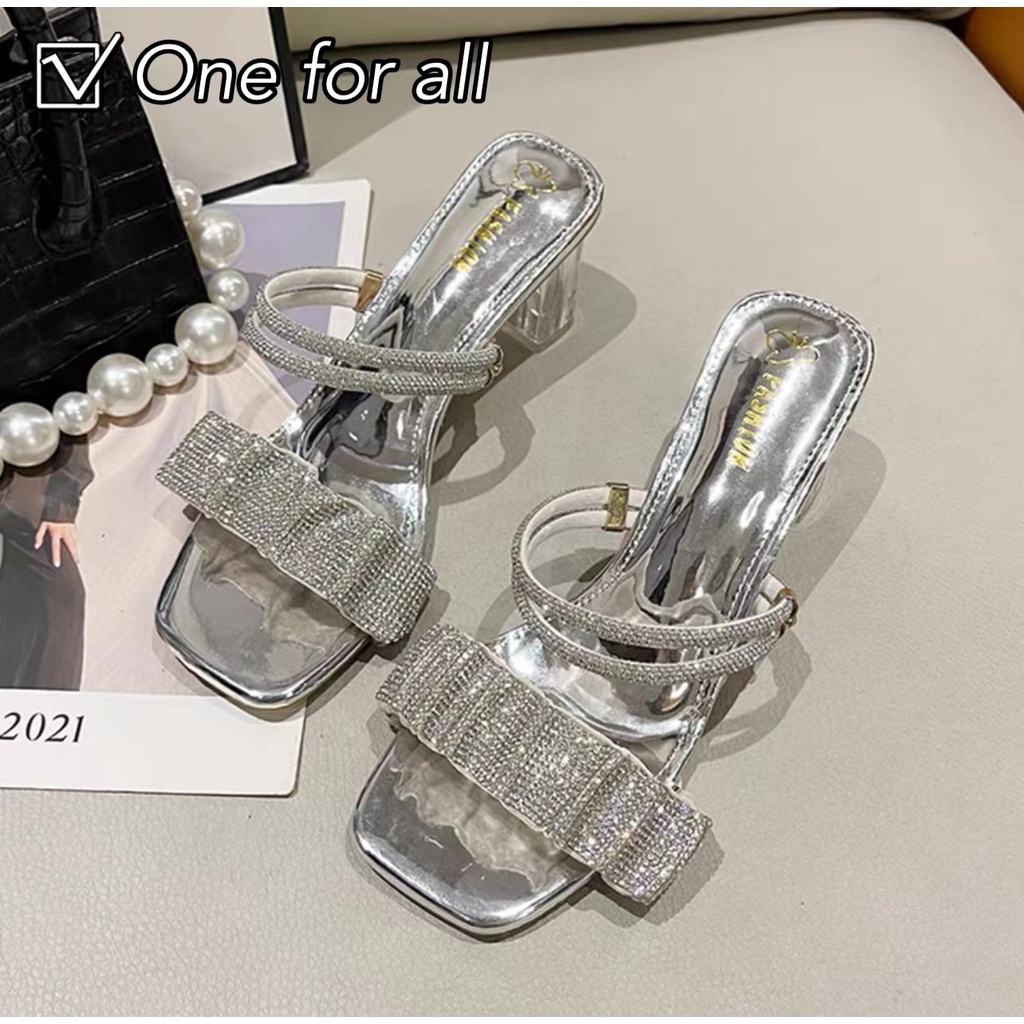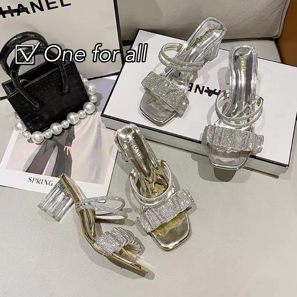 🔥พร้อมส่ง🔥(ส้น2.5นิ้ว) TX323 รองเท้าส้นคริสตัล รองเท้าส้มสุงเปิดเท้า ใส่ได้2แบบ แต่งอะไหล่คริสตัลหรูเริ่ด สวยมากๆจ้า