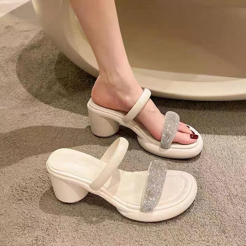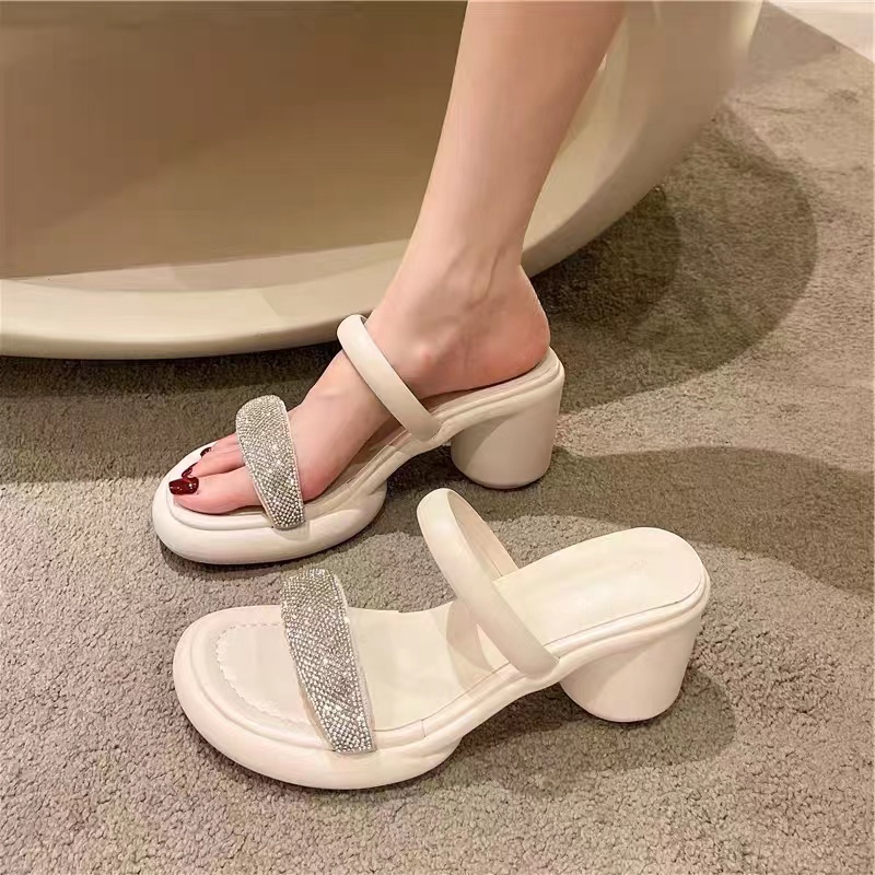 🔥พร้อมส่งจากไทย🔥TX359 รองเท้าส้นสูง รองเท้าส้นตึก สูง7cm หรูหรามากแม่!! 💕 งานมาใหม่สวยมากคะ