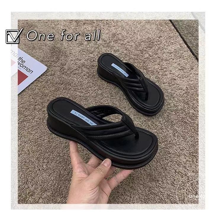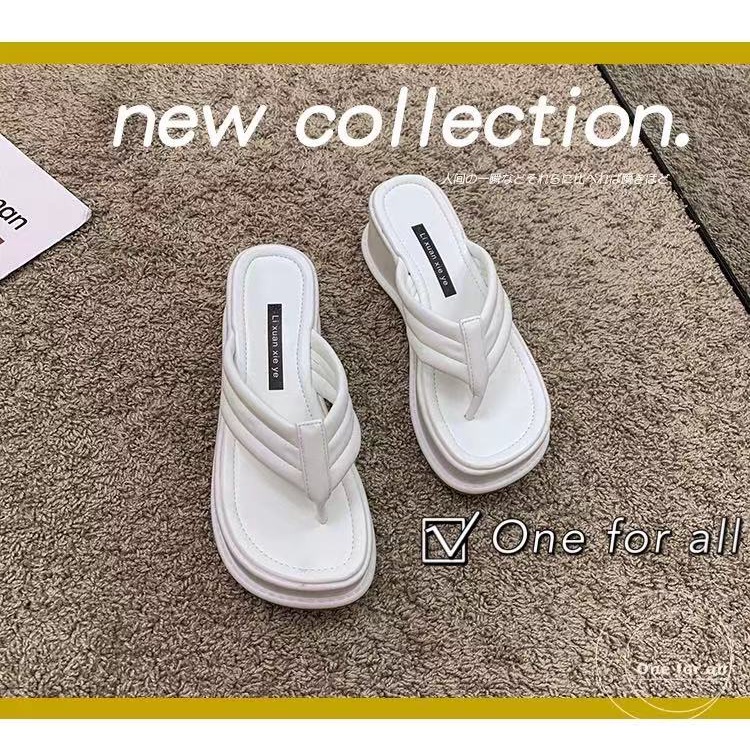 🔥พร้อมส่ง🔥TX266 คอลใหม่ล่าสุด รองเท้าแฟชั่นผู้หญิง รองเท้าแตะสวม แบบรัดส้นมีหู ความสูง 5.5cm (3สี)