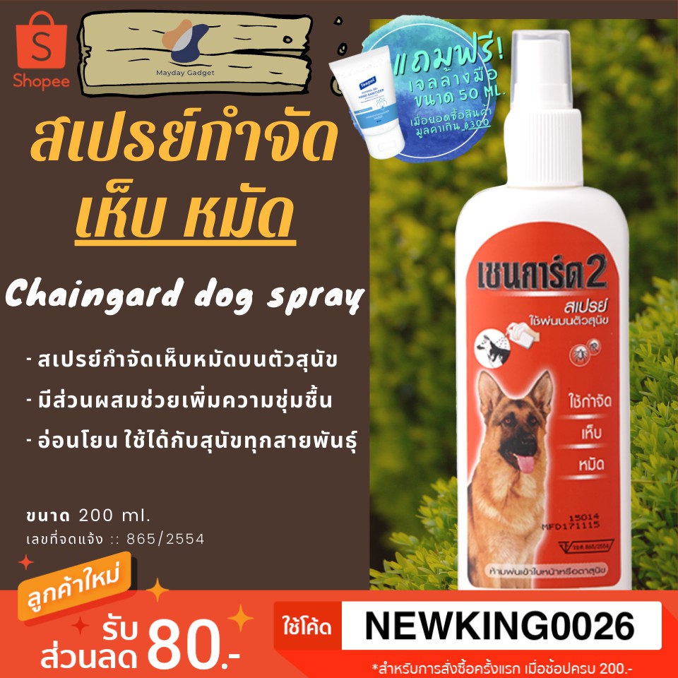 สเปรย์เชนกาด2 โฉมใหม่ขวดขาว กำจัด เห็บ หมัด Chaingard เชนการ์ด สุนัข Dog Spray tick flea mayday gadget maydaygadget