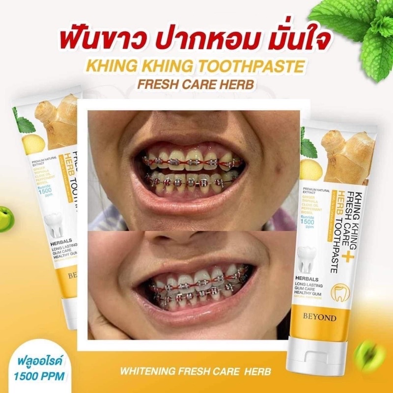 KHING KHING FRESH CARE+ HERB TOOTHPASTE ยาสีฟันขิงขิง ลดกลิ่นปาก 50 กรัม
