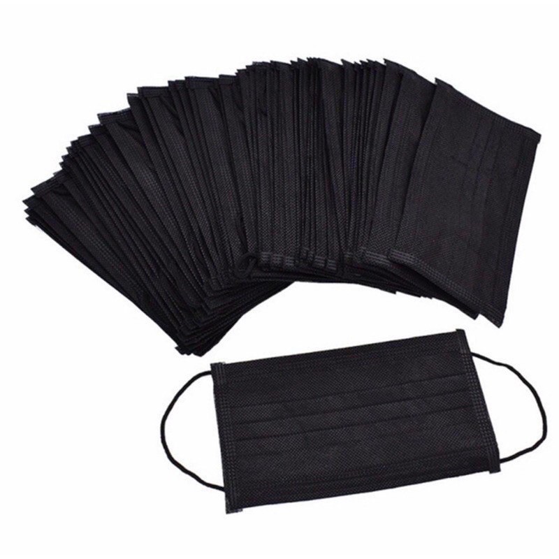 พร้อมส่ง🖤หน้ากากอนามัยสีดำ 2 ด้าน/แมสสีดำราคาถูกสุดกล่องละ50ชิ้นแมสคาร์บอน
