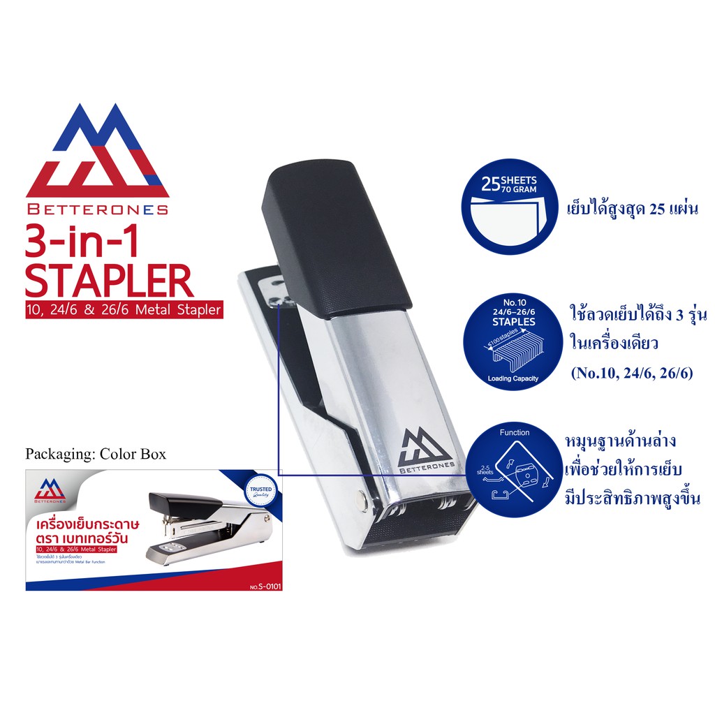 เครื่องเย็บกระดาษ แม็กเย็บกระดาษ BETTERONES 3-in-1 รุ่น S-0101 ใช้ลวดเบอ ร์ 10, 3, 35 ทนทาน เย็บง่าย เย็บเบา