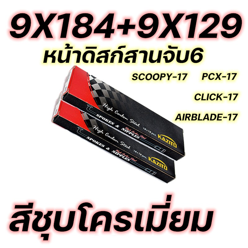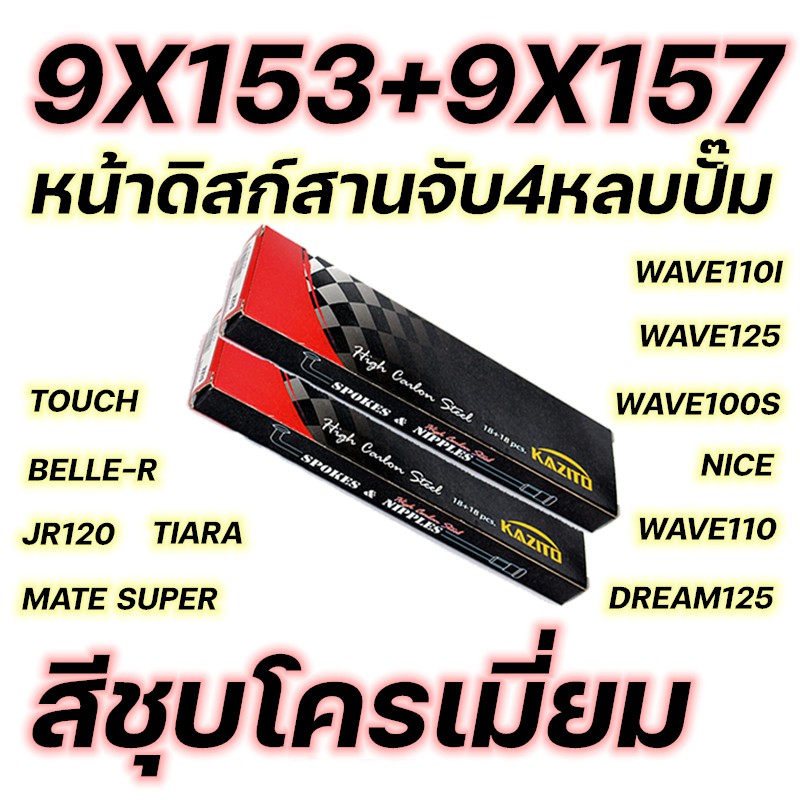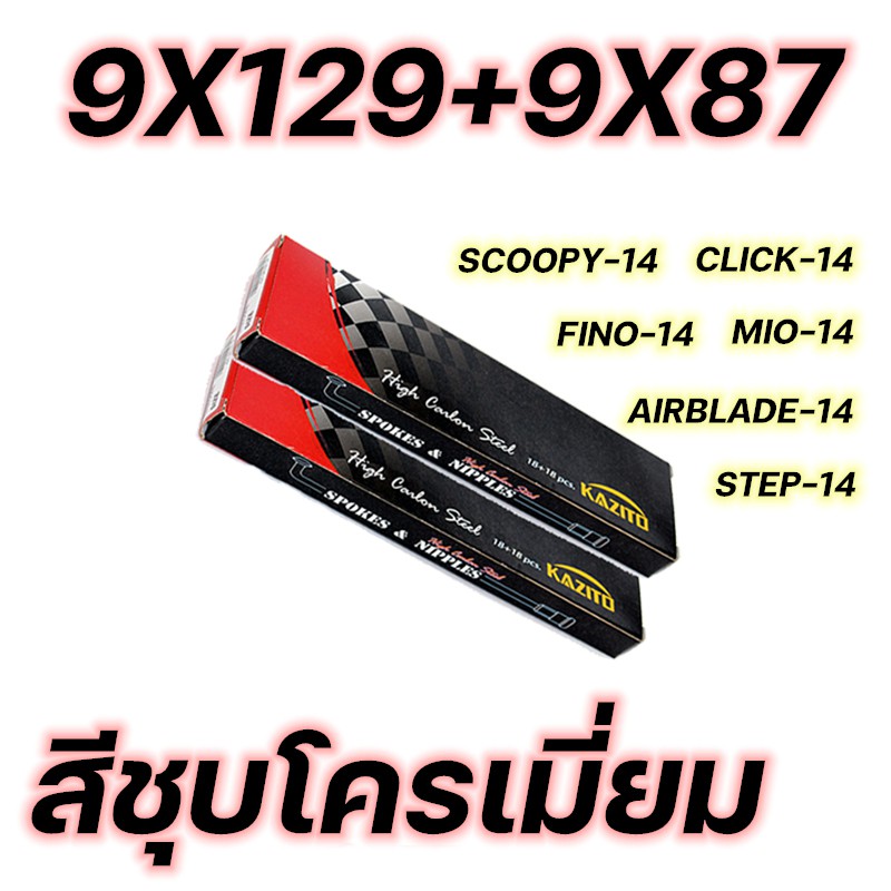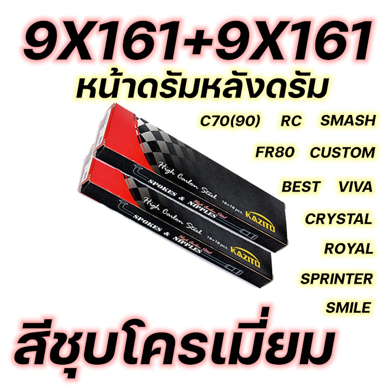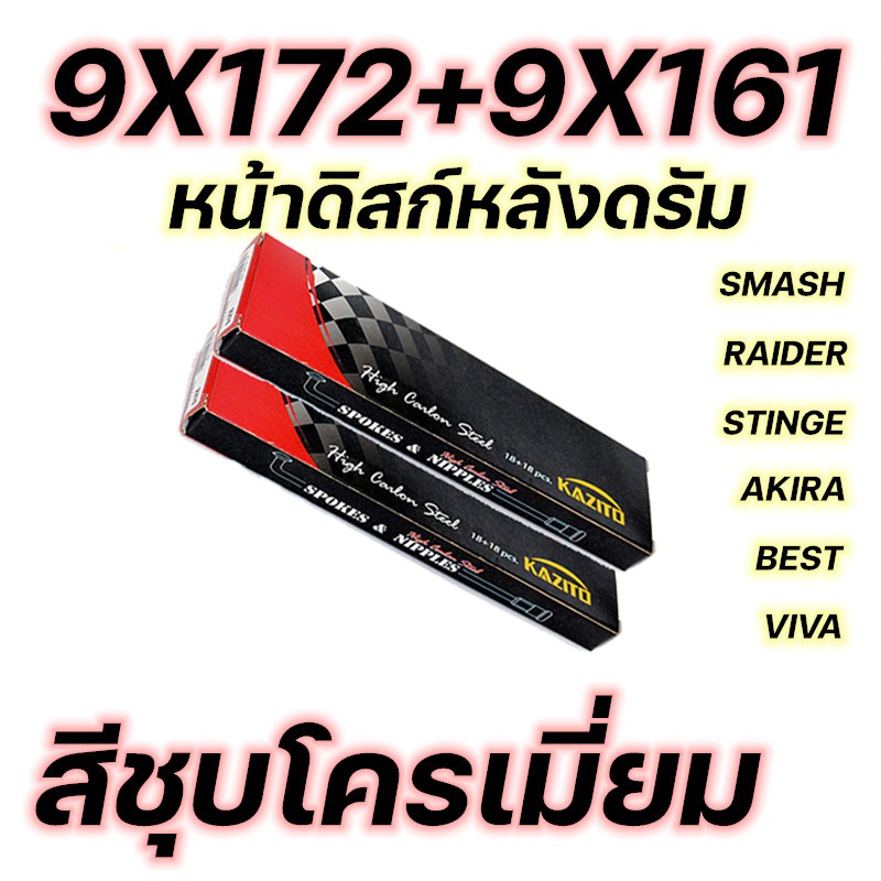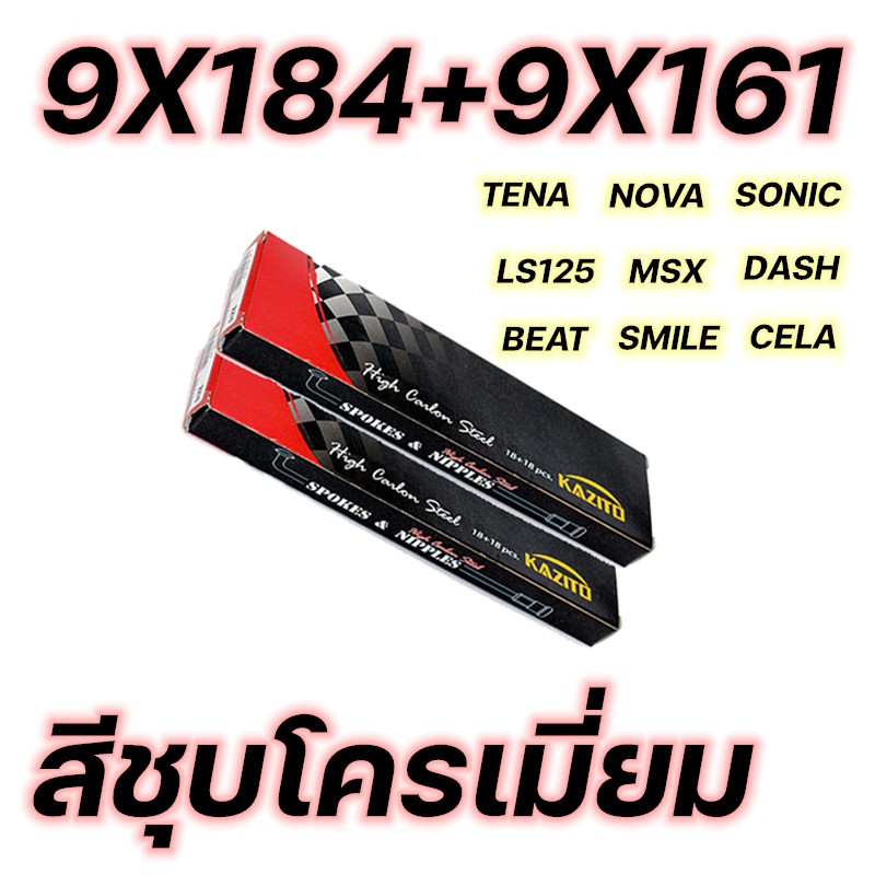ซี่ลวด KAZITO เบอร์9ชุบโครเมี่ยม ขายเป็นชุด(หน้า+หลัง)อย่างดี ทนทานต่อการเกิดสนิม กล่องละ36(ซี่+หัว) SPOKES&NIPPLES