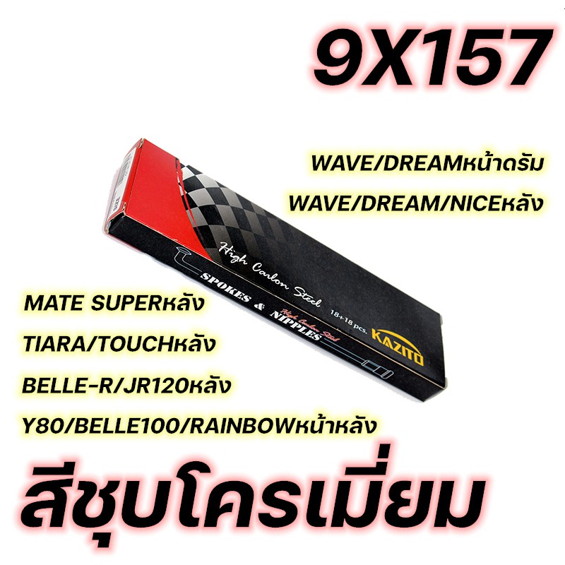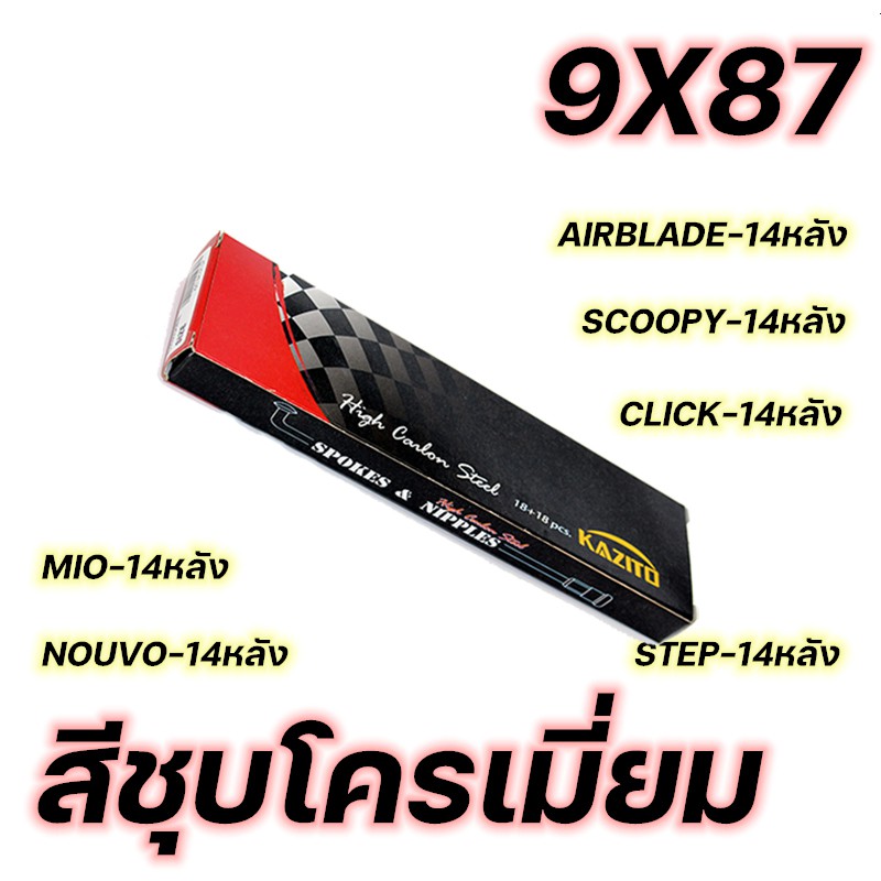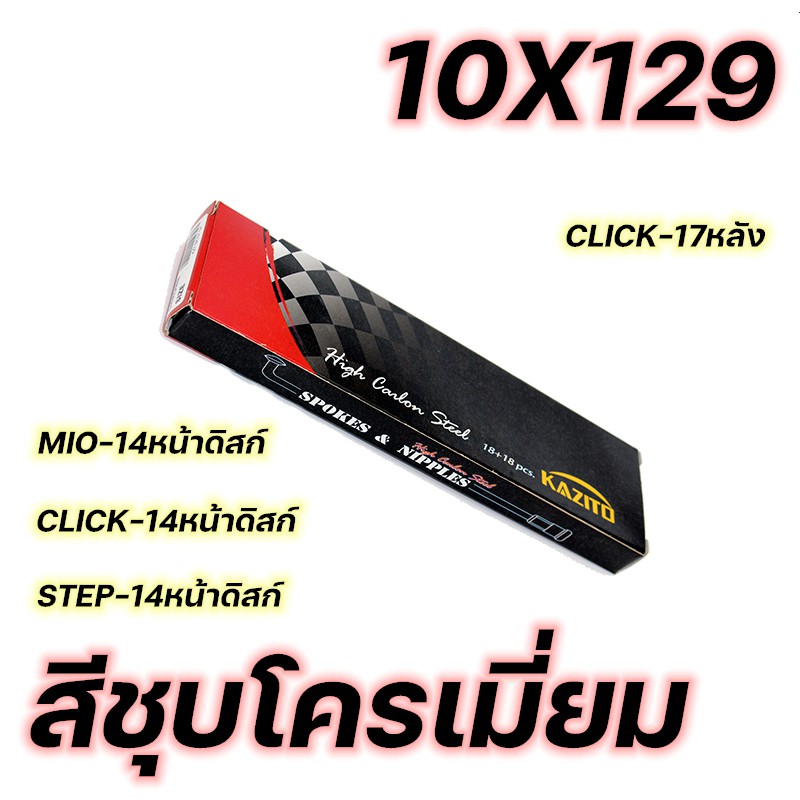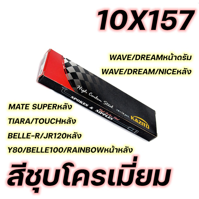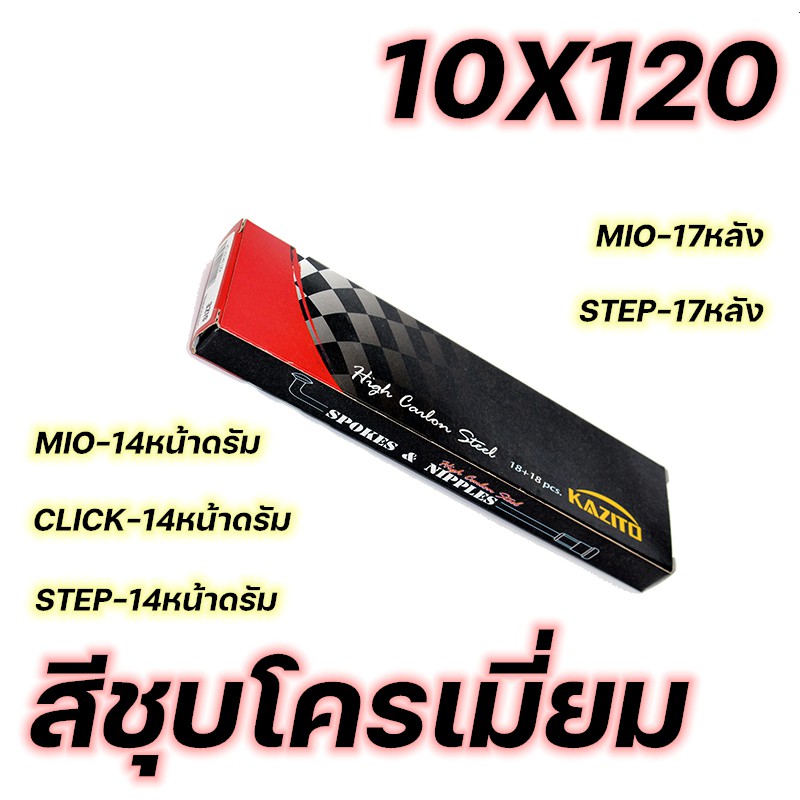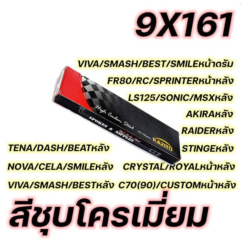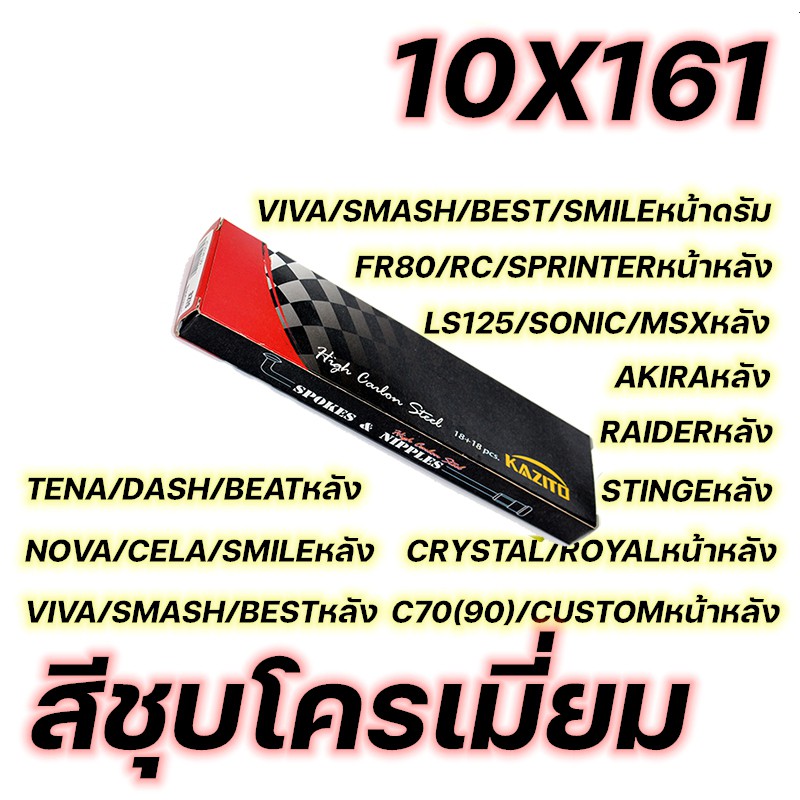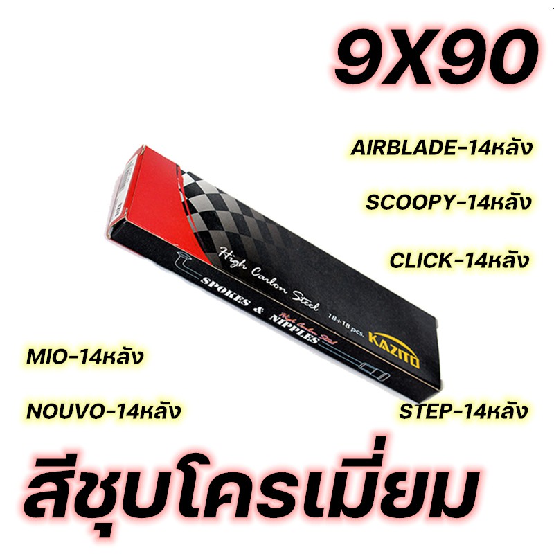 ซี่ลวด KAZITO ชุบโครเมี่ยม ขายเป็นกล่อง(1กล่อง=1ล้อ) อย่างดี ทนทานต่อการเกิดสนิม กล่องละ36(ซี่+หัว) SPOKES&NIPPLES
