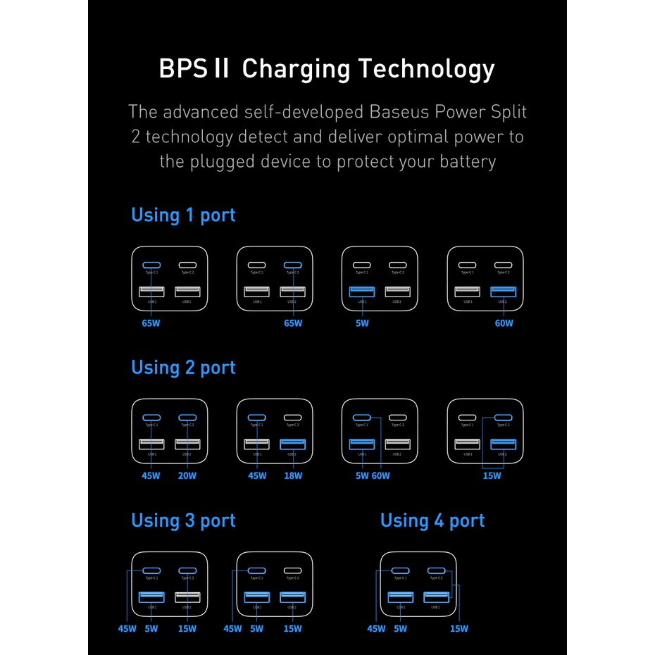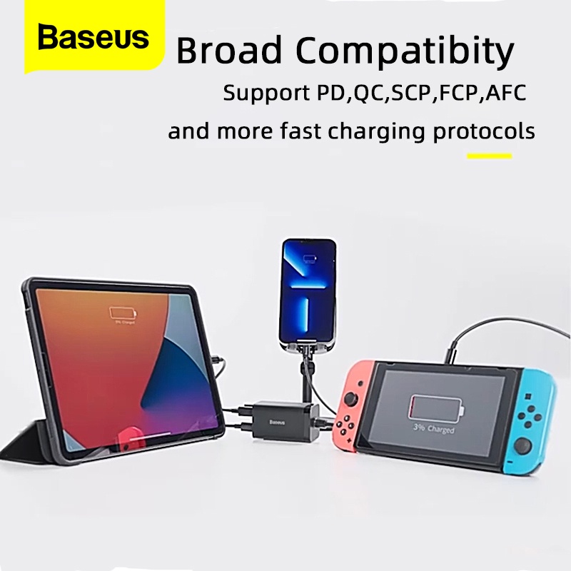 Baseus GaN ที่ชาร์จเร็ว 100W 65W 4.0 QC 3.0 PD USB C Type C USB สําหรับโทรศัพท์มือถือ แล็ปท็อป