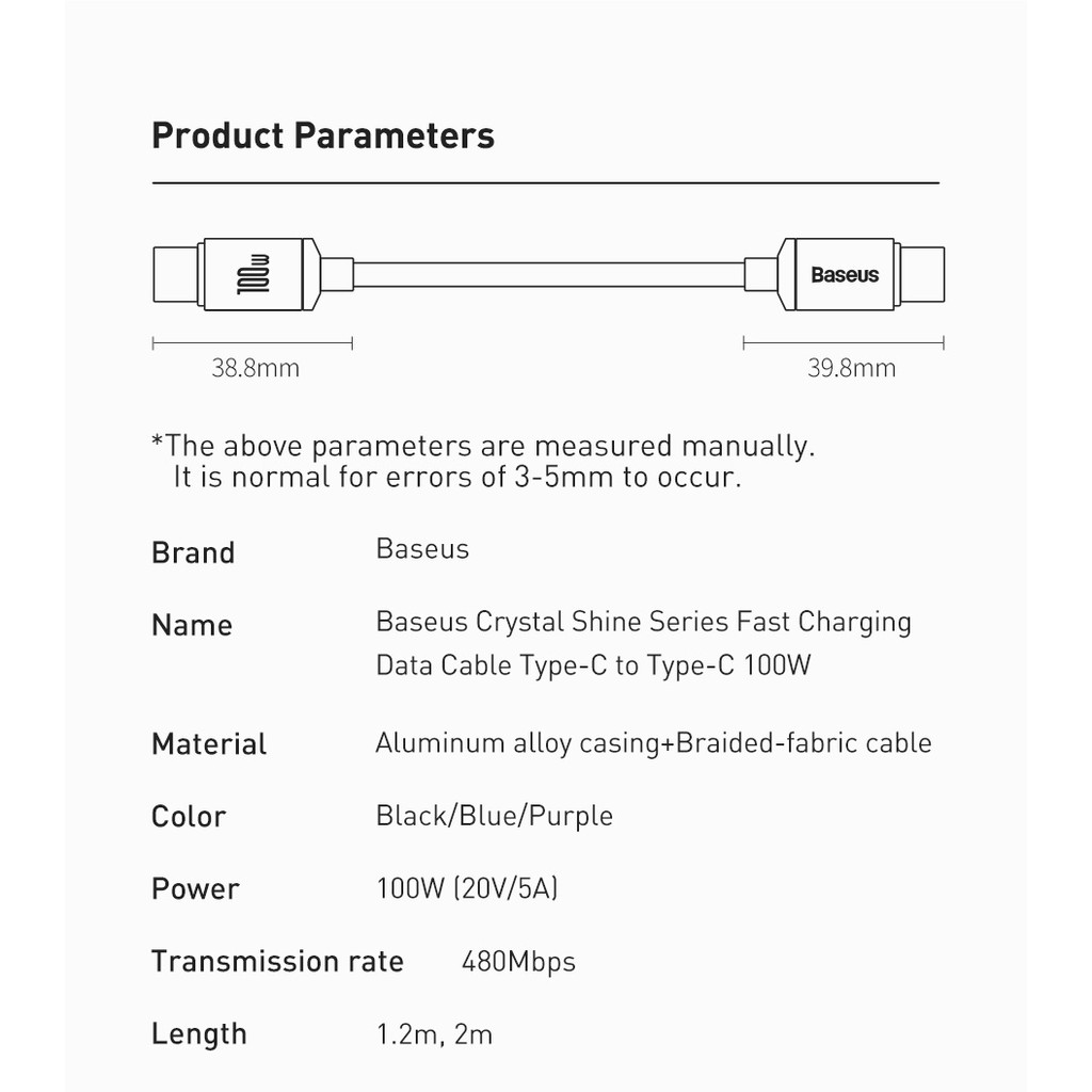 Baseus 100W Type C ถึง Type C สายเคเบิล สําหรับ iphone15 ชาร์จเร็ว 5A USBC สายเคเบิล สําหรับ iphone15 Xiaomi Samsung Huawei