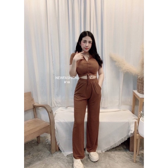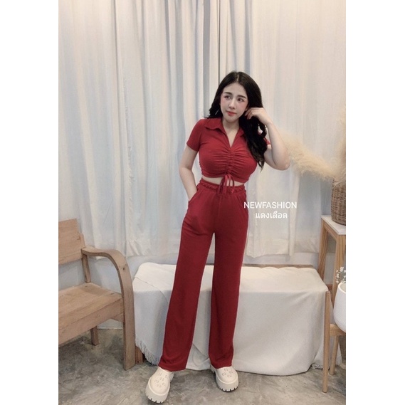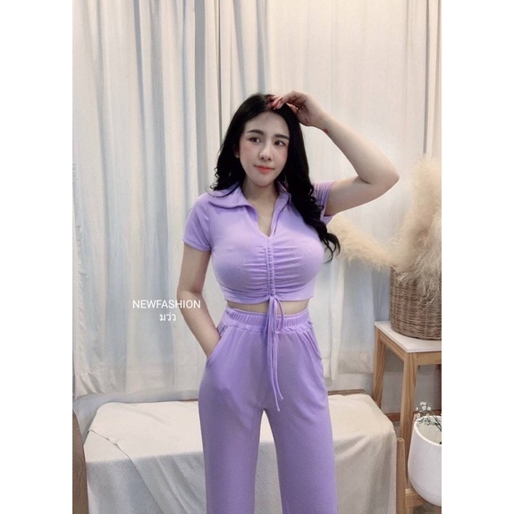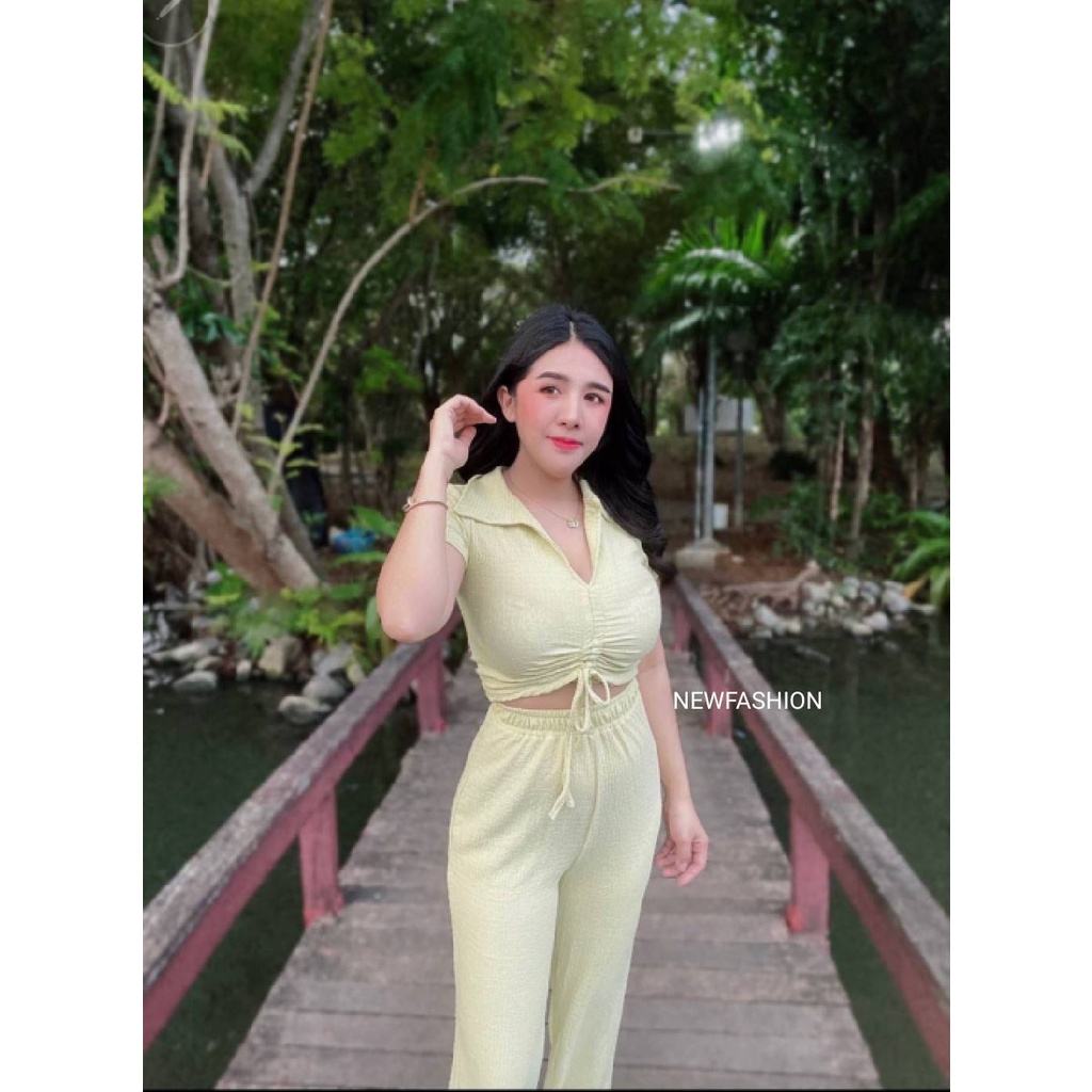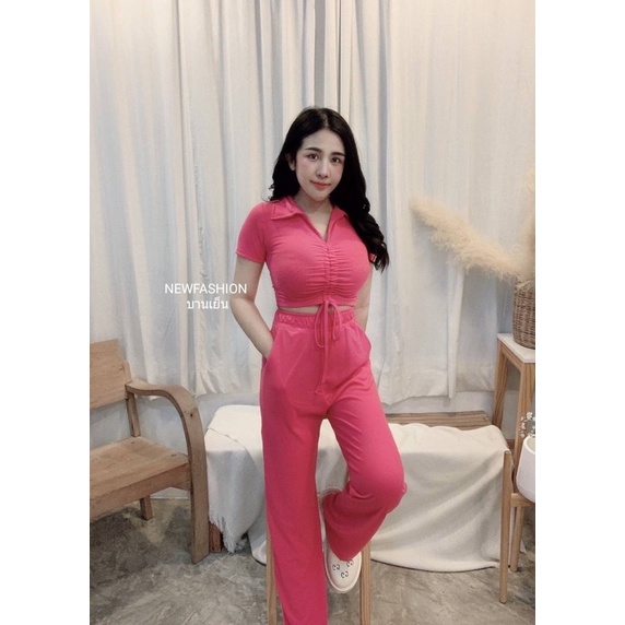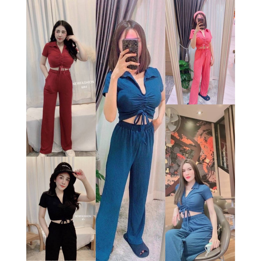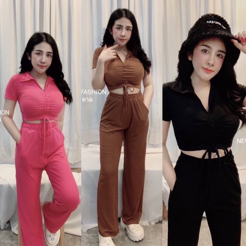 Dzaishop💕 ชุดเซ็ท เสื้อแขนสั้นคอปก รูดหน้า+กางเกงขายาว งานป้าย สวยๆ 💥 ชุดเซ็ทแฟชั่น 🎉 ชุดเซตตามหา