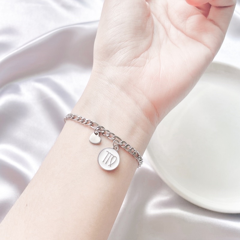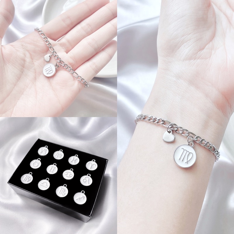 [ส่งจากไทย] สร้อยข้อมือสแตนเลสแท้เกรดนำเข้า + จี้ราศี 12 ราศี + จี้หัวใจมินิ ❤️ ไม่ลอกไม่ดำ