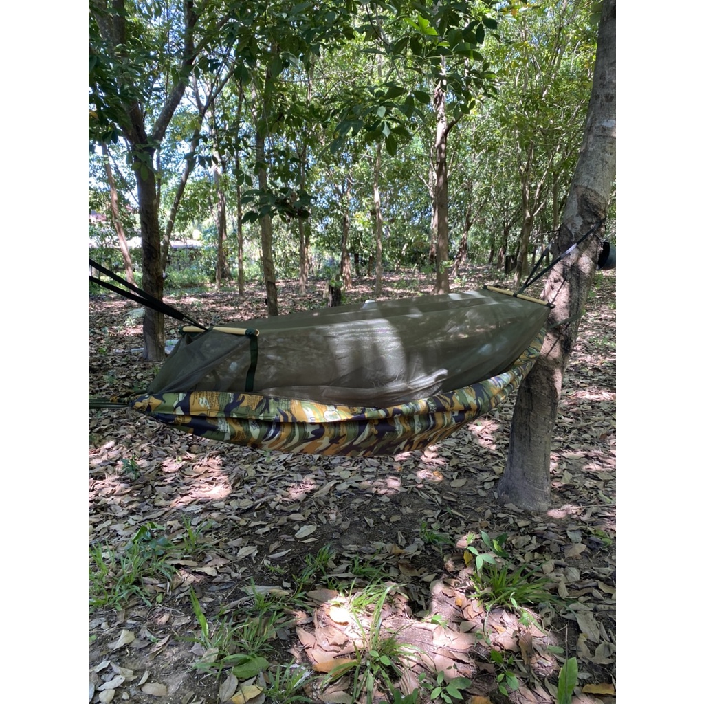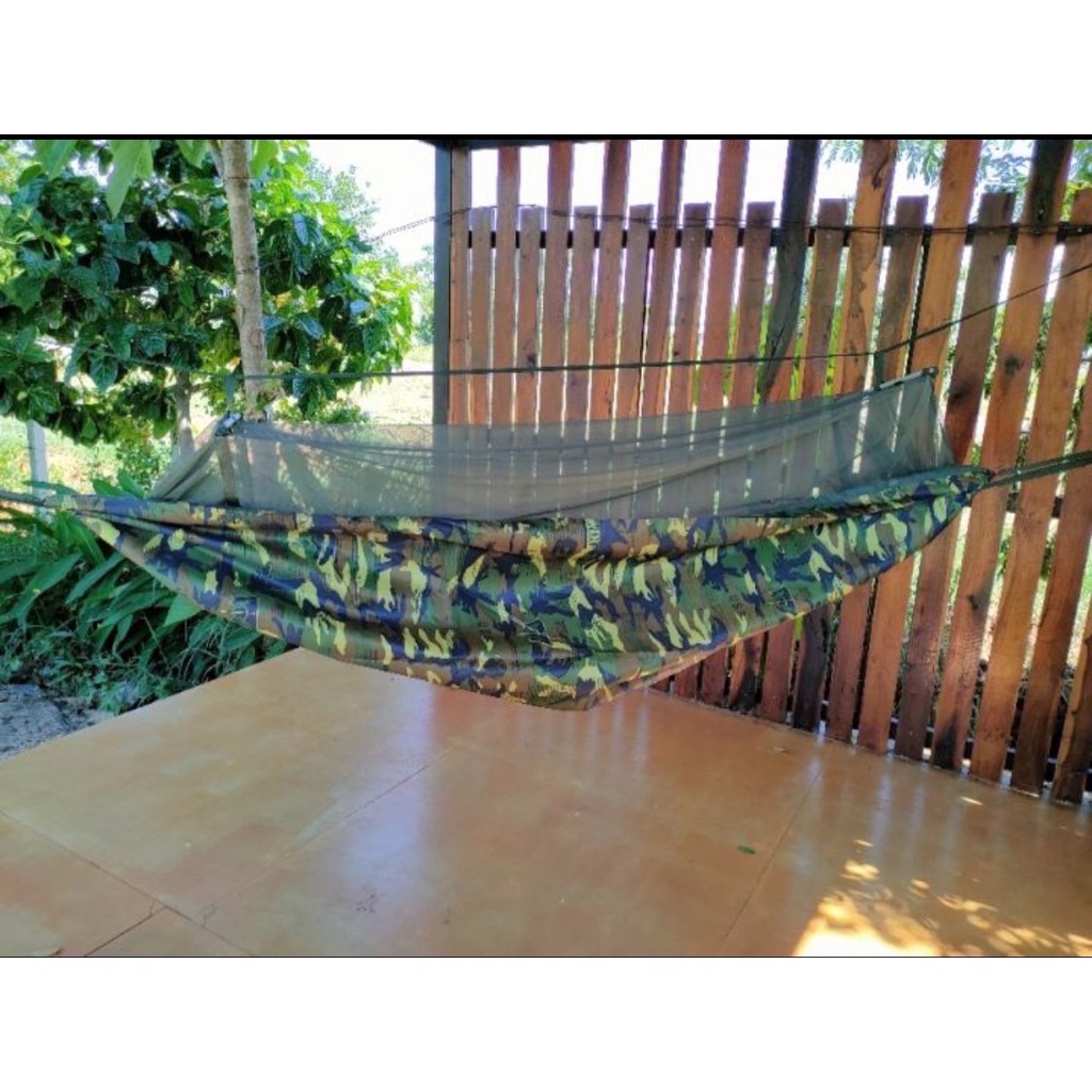 เปลผ้าร่ม ลายทหาร มีมุ้ง แถมเชือก