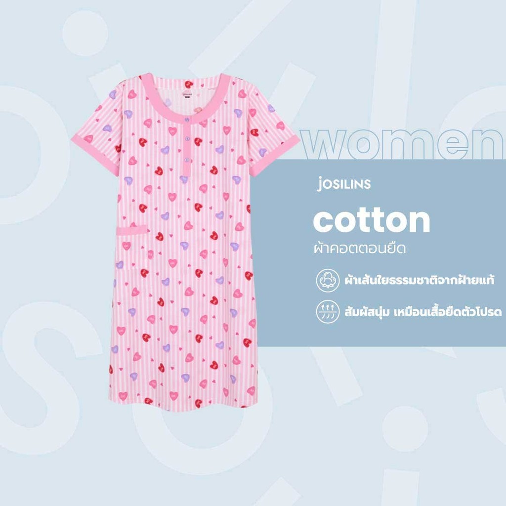 Josilins ชุดนอน ผู้หญิง เดรสยาว กระโปรงแขนสั้น คอกลม ผ้ายืด ชุด อยู่บ้าน SM 2025