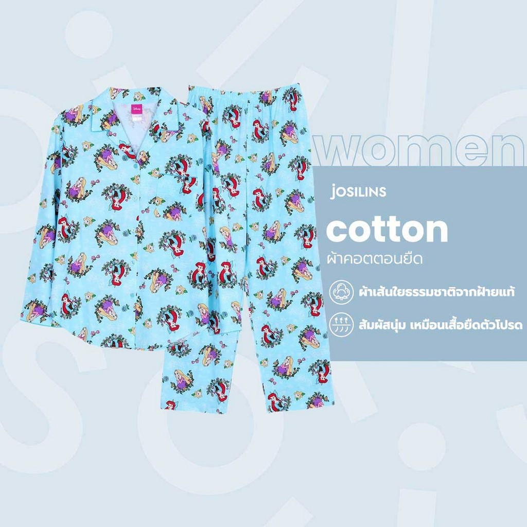 Josilins ชุดนอน ผู้หญิง ลิขสิทธิ์ ดิสนีย์ Disney Princess เจ้าหญิง เสื้อค อปก แขนยาว ขายาว ผ้ายืด ฟรีไซส์ คละลาย