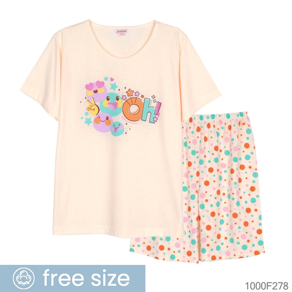 Josilins ชุดนอน ชุดอยู่บ้าน ผู้หญิง เสื้อสกรีนลาย คอกลม แขนสั้น ขาสั้น ผ้ายืด คละสี คละลาย NEW3