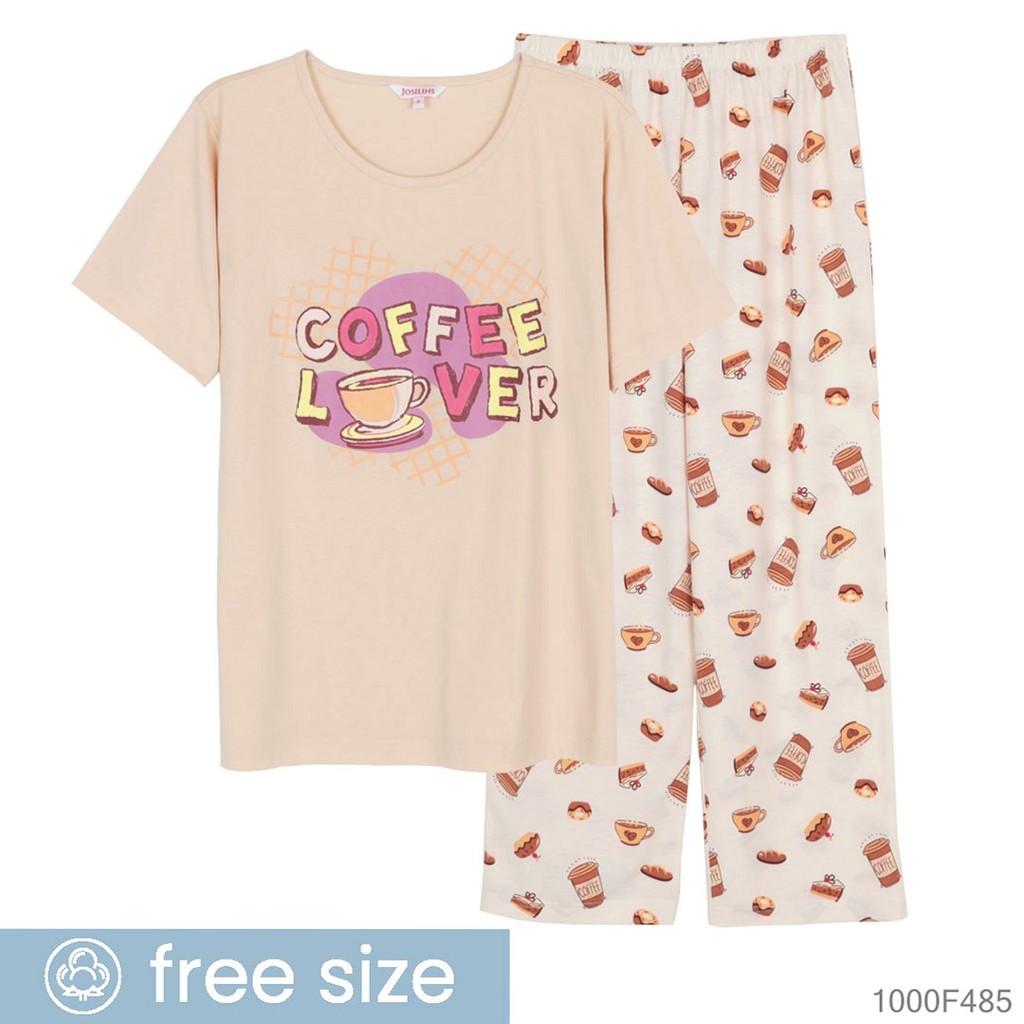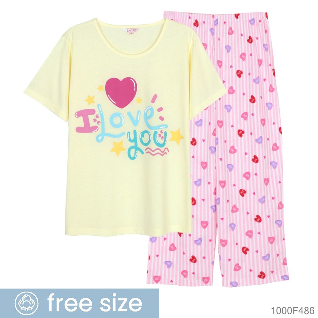 Josilins ชุดนอน ชุดอยู่บ้าน ผู้หญิง เสื้อสกรีนลาย คอกลม แขนสั้น ขายาว ผ้ายืด คละสี คละลาย NEW6