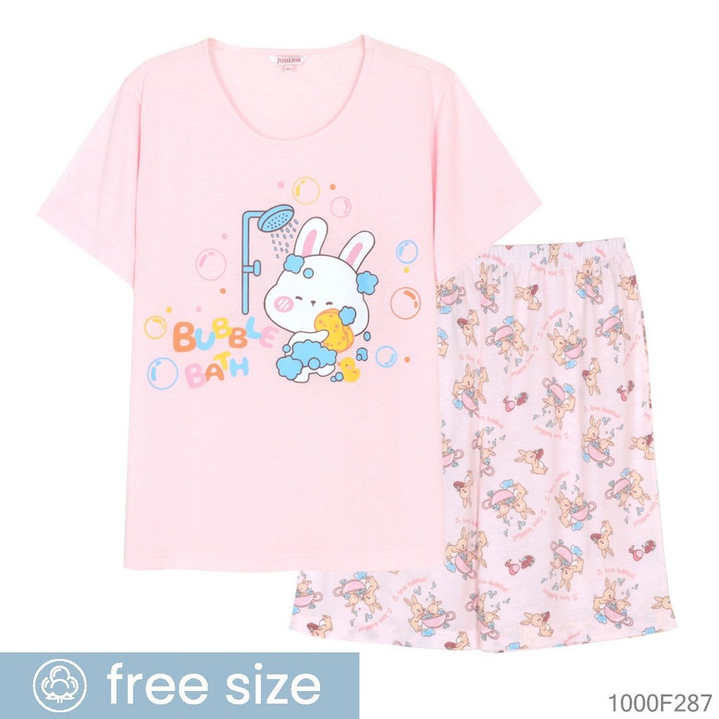 Josilins ชุดนอน ชุดอยู่บ้าน ผู้หญิง เสื้อสกรีนลาย คอกลม แขนสั้น ขาสั้น ผ้ายืด คละสี คละลาย NEW17