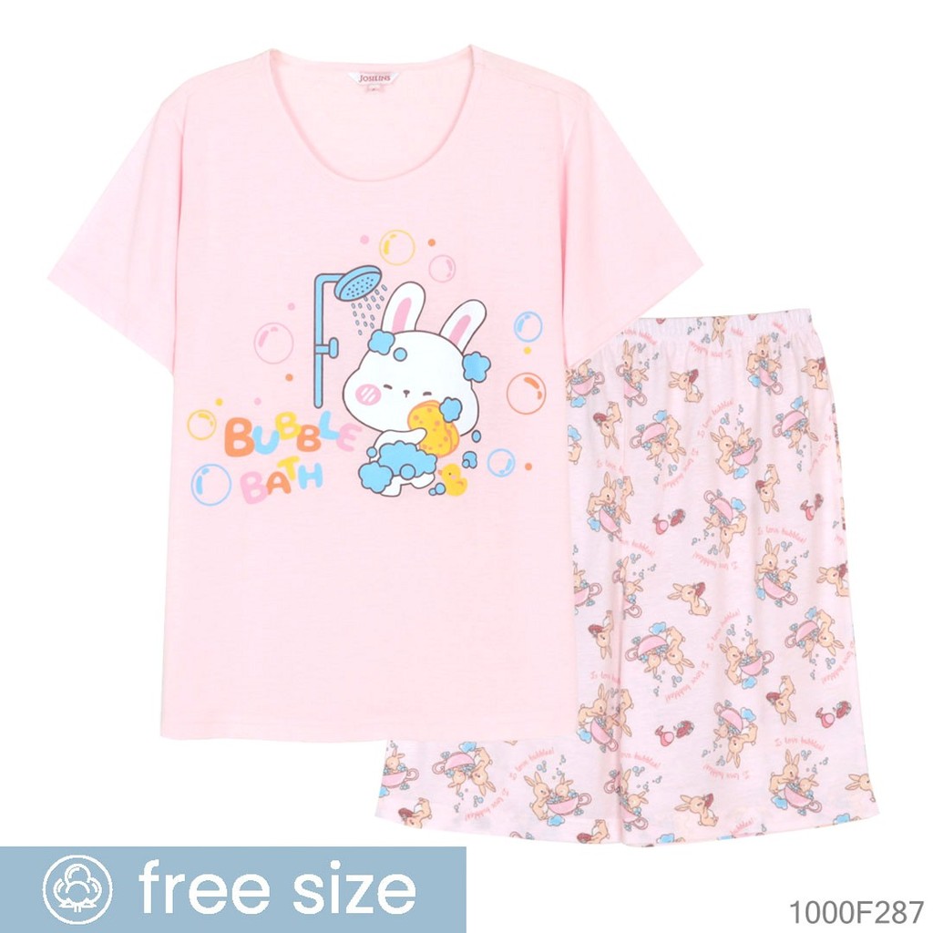 Josilins ชุดนอน ชุดอยู่บ้าน ผู้หญิง เสื้อสกรีนลาย คอกลม แขนสั้น ขาสั้น ผ้ายืด คละสี คละลาย NEW12