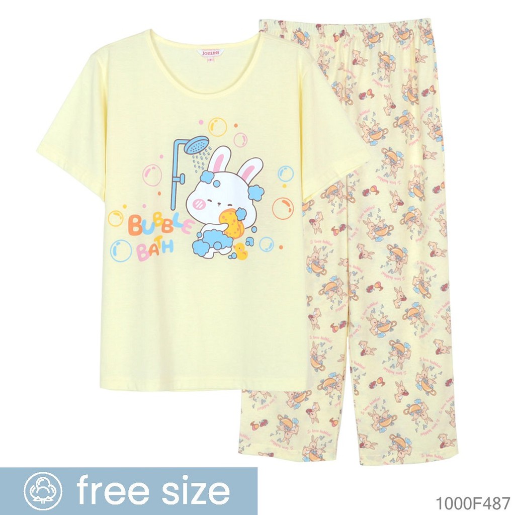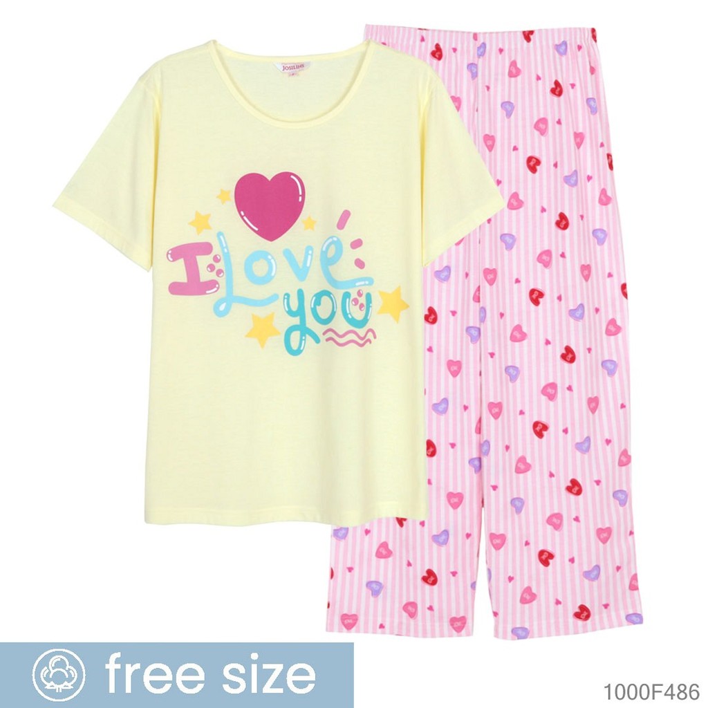 Josilins ชุดนอน ชุดอยู่บ้าน ผู้หญิง เสื้อสกรีนลาย คอกลม แขนสั้น ขายาว ผ้ายืด คละสี คละลาย NEW2
