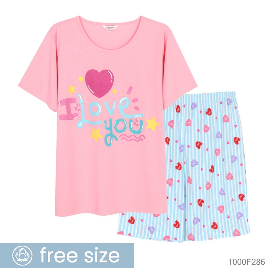 Josilins ชุดนอน ชุดอยู่บ้าน ผู้หญิง เสื้อสกรีนลาย คอกลม แขนสั้น ขาสั้น ผ้ายืด คละสี คละลาย NEW9
