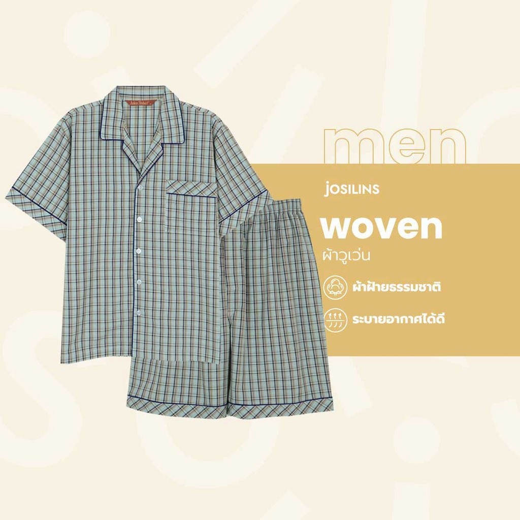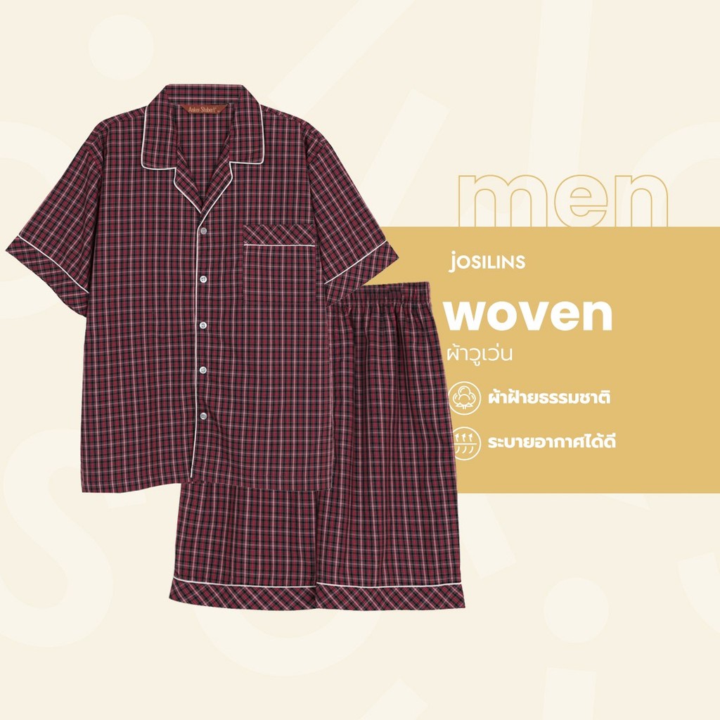 Josilins ชุดนอน ชุดอยู่บ้าน เสื้อแขนสั้น กางเกงขาสั้น ป้าย Anker Stubert ผ้าวูเว่น ใส่ได้ชายหญิง คละลาย