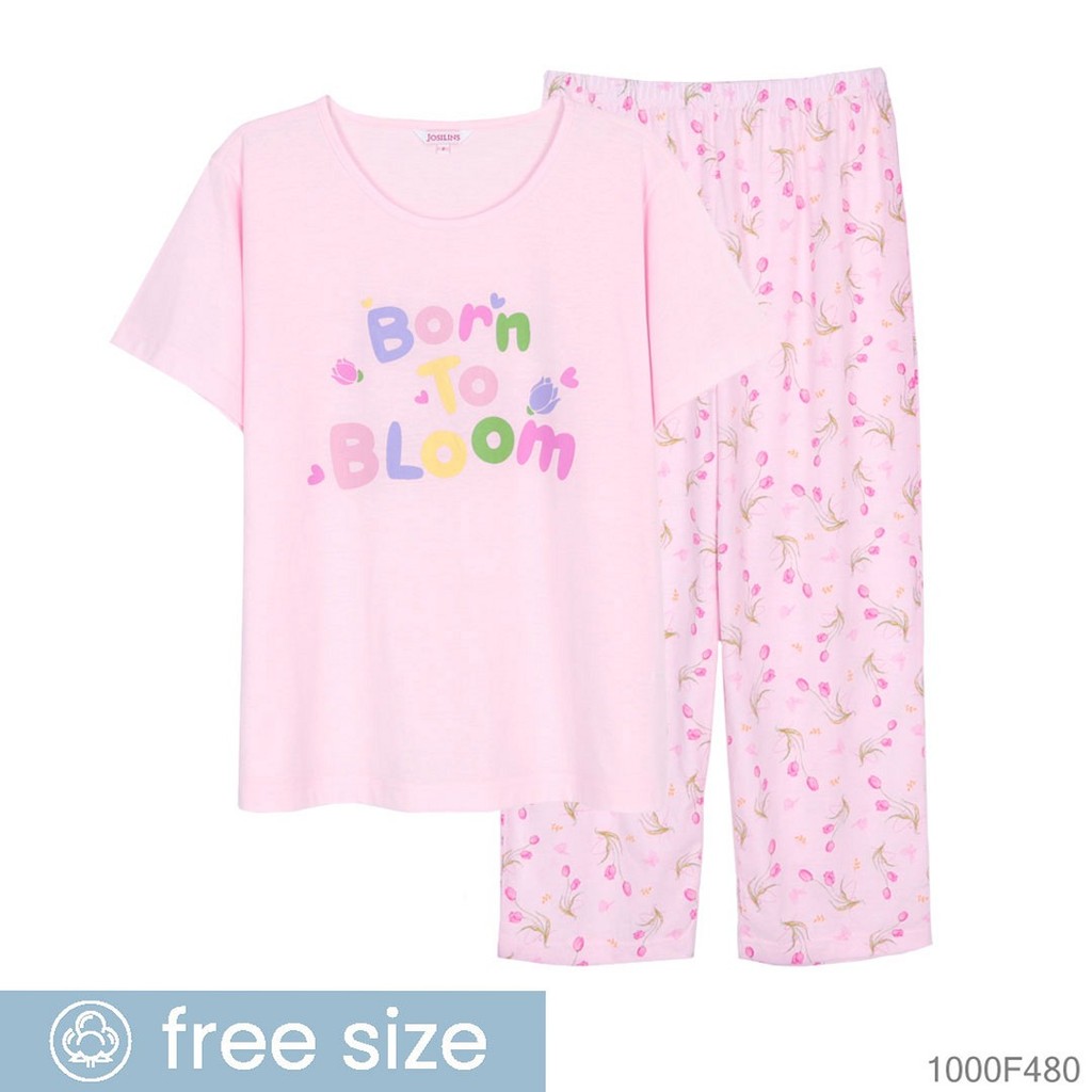 Josilins ชุดนอน ชุดอยู่บ้าน ผู้หญิง เสื้อสกรีนลาย คอกลม แขนสั้น ขายาว ผ้ายืด คละสี คละลาย NEW12