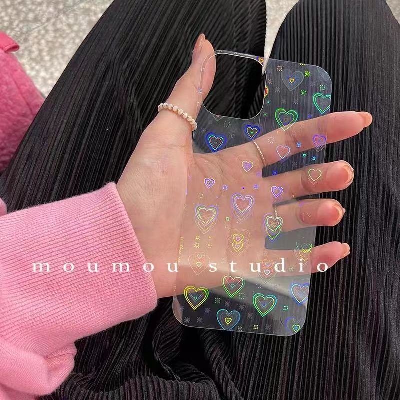 หัวใจเลเซอร์สําหรับiPhone 17 Pro Max 15 16 14 Pro Max 11 12 13 Pro Max Miniเลเซอร์กระดาษสําหรับIphone Xr Xs 6s 7 8 plus Clear Caseกลับตกแต่งGlitterสติกเกอร์