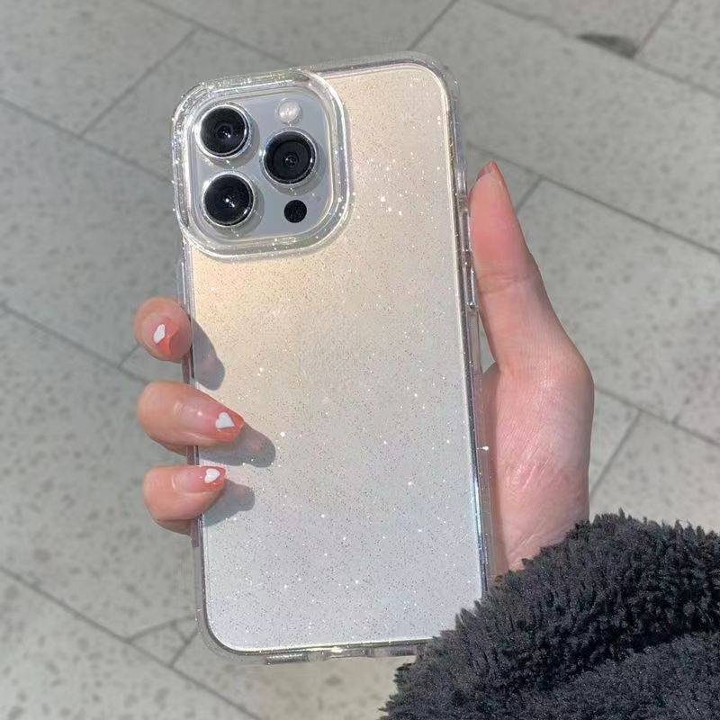 Hard Case (พร้อมส่ง) เคสโทรศัพท์มือถือแบบนิ่ม ใส แต่งกลิตเตอร์ สองชั้น สําหรับ iPhone 17 Pro Air 16 15 14 Pro Max 13 11 12 Pro Max XR XS Max 7 8 Plus SE 3