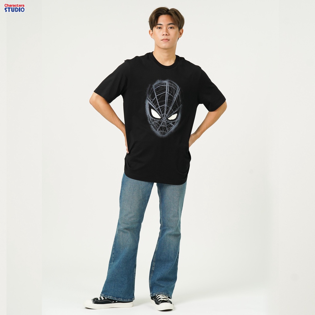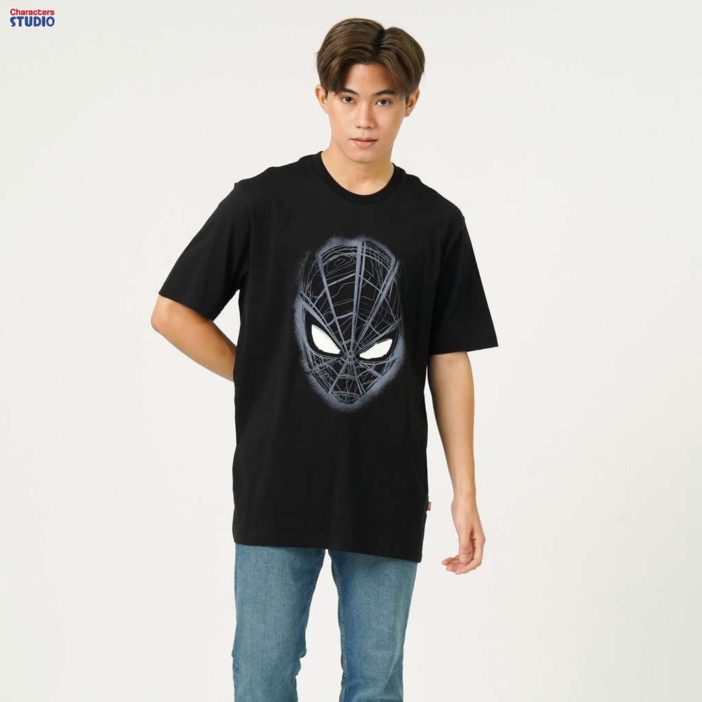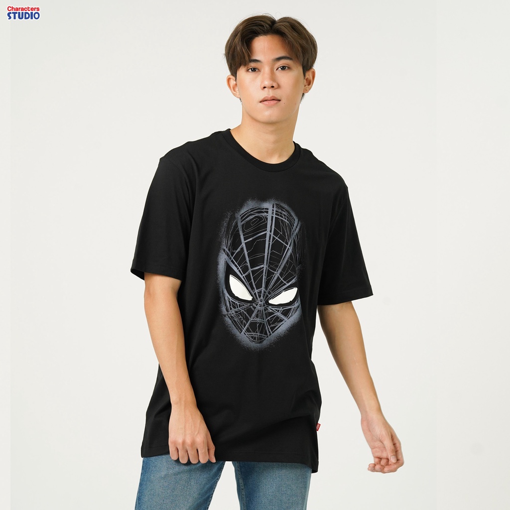 Marvel เสื้อยืดผู้ชายลายสไปเดอร์แมน เทคนิคเรืองแสงในที่มืด ผ้าCotton 100% สินค้าลิขสิทธิ์แท้ Characters Studio