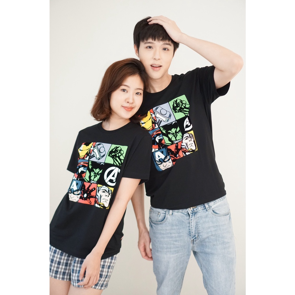 Marvel เสื้อยืดผู้ชายลายอเวนเจอร์ พิมพ์ลา ยกำมะหยี่(Flock) ผ้าCotton100% สินค้าลิขสิทธ์แท้ characters studio