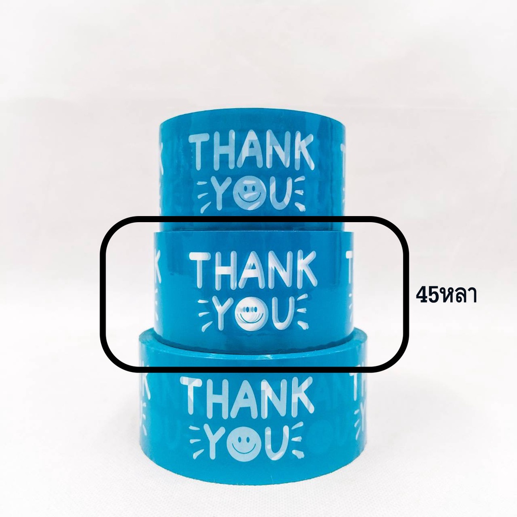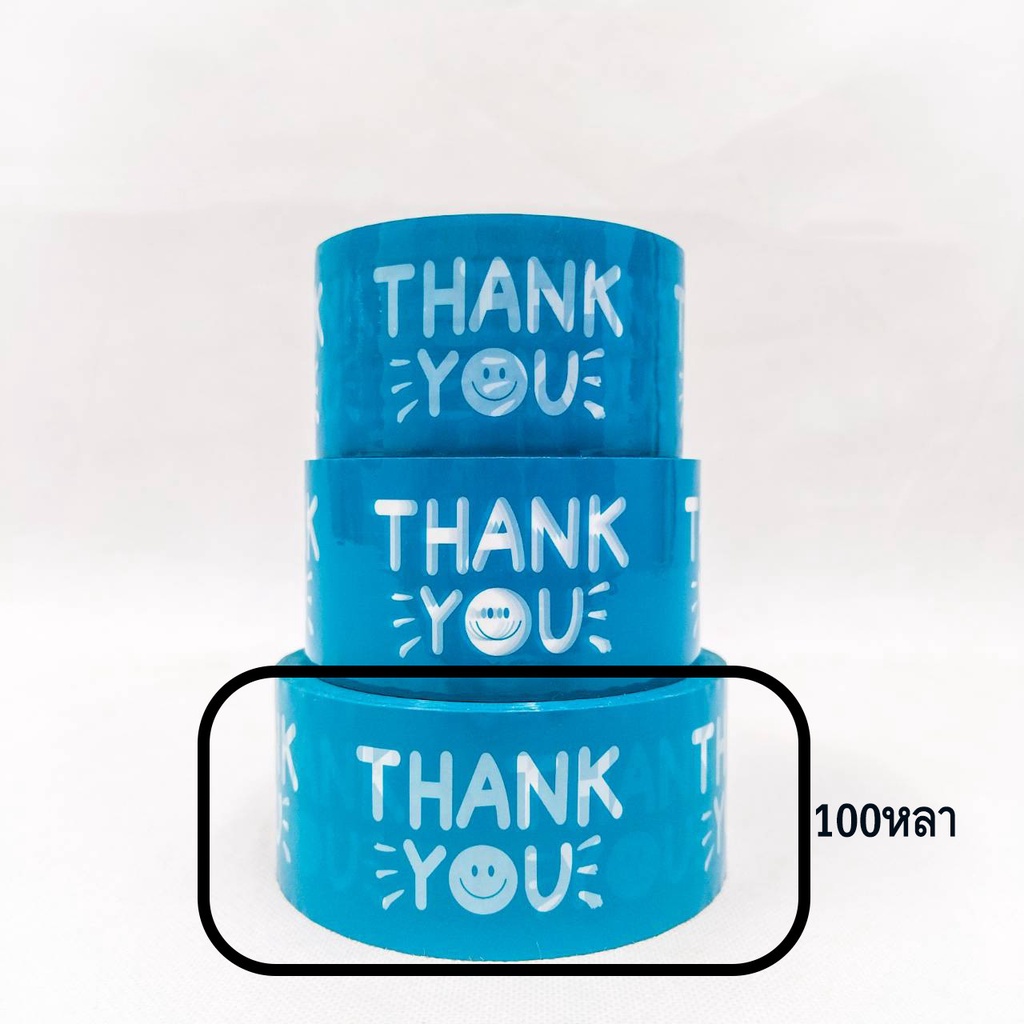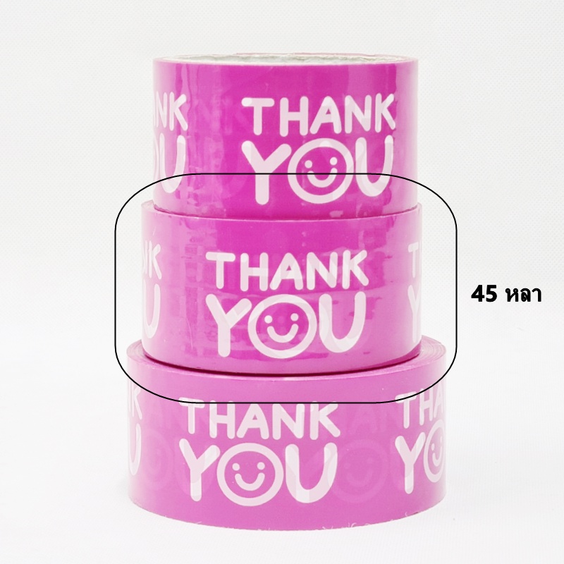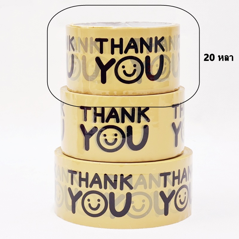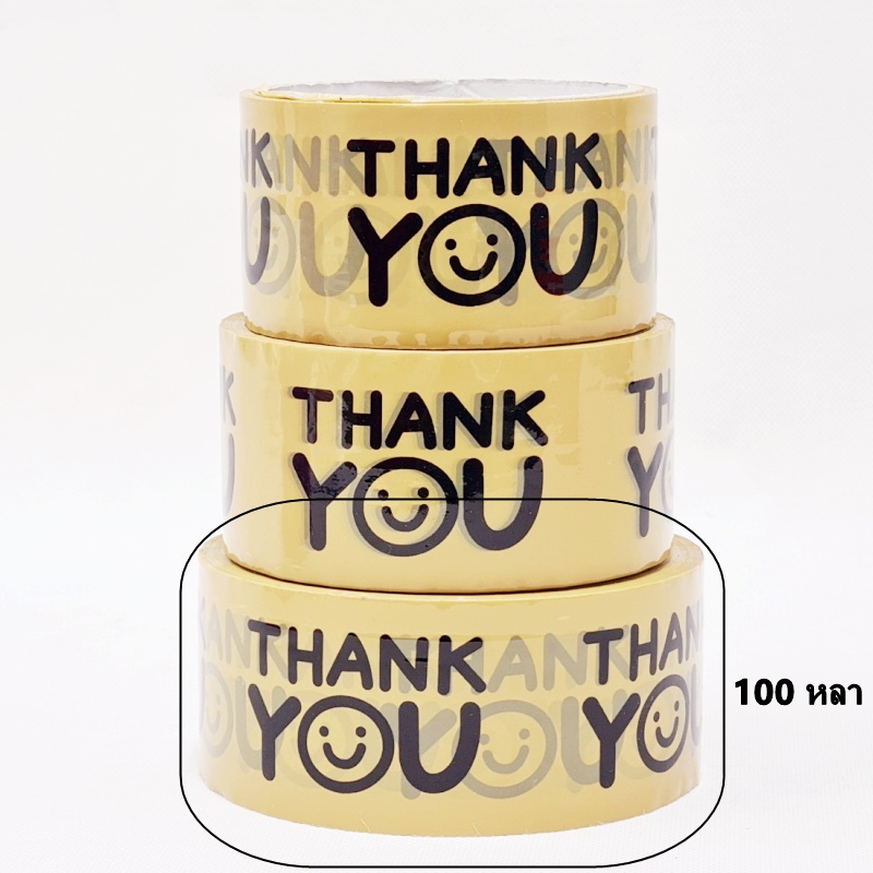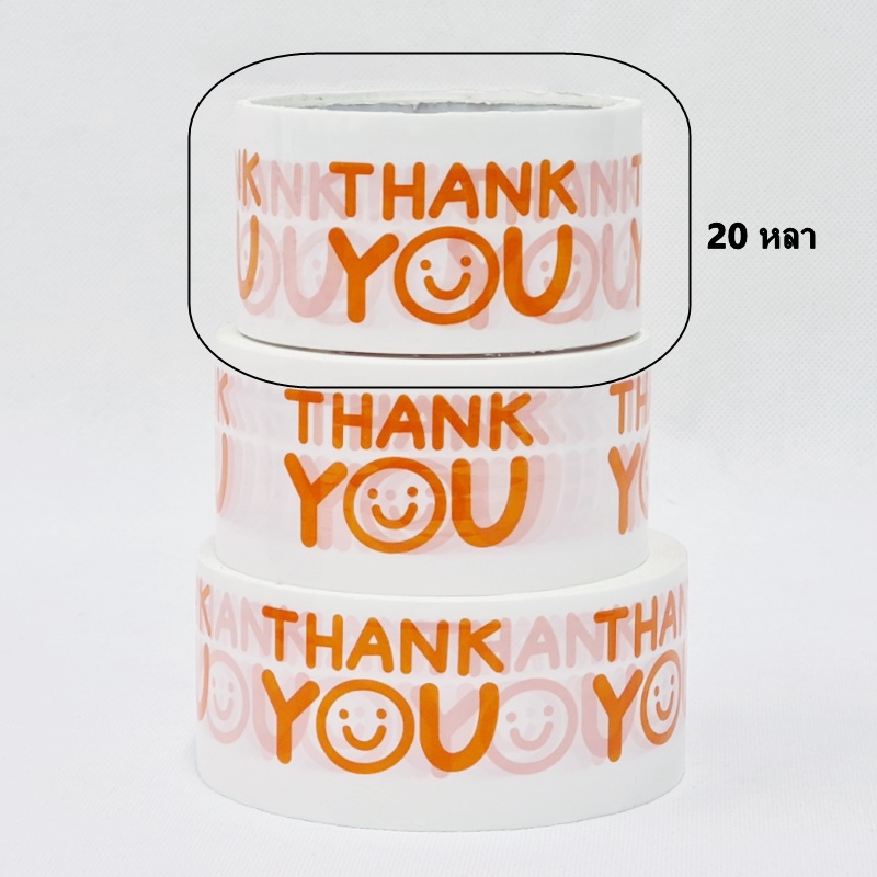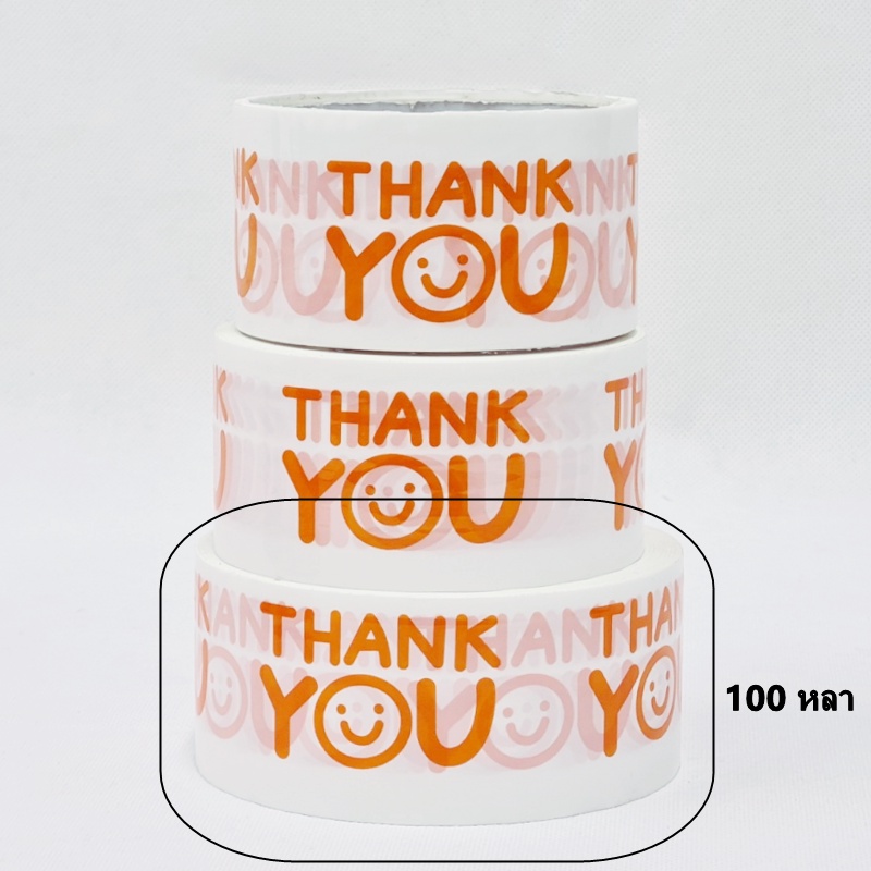 (1 ม้วน) เทปยิ้ม(Tape) เทปกาวพิมพ์ลาย THANK YOU เทปยิ้มกว้าง 2 นิ้ว ยาว 20 หลา/45 หลา/100 หลา
