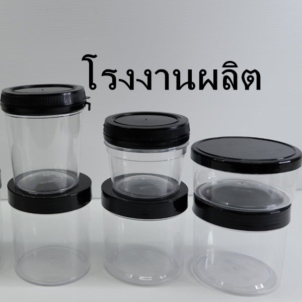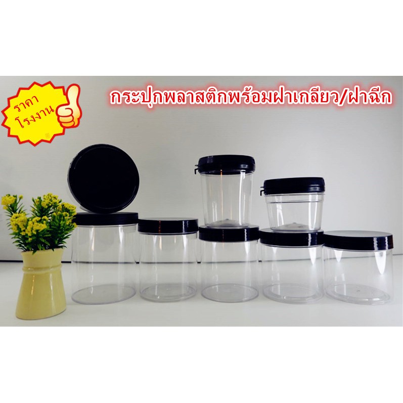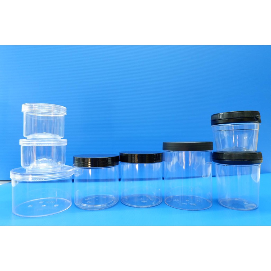[FF/GG] กระปุกพลาสติกใส กระปุกพลาสติกพร้อมฝา ฝาเกลียว ฝาฉีก สีดำ ขนาด 120//130//200//240//280//310//380//450 ml. (1 ใบ)