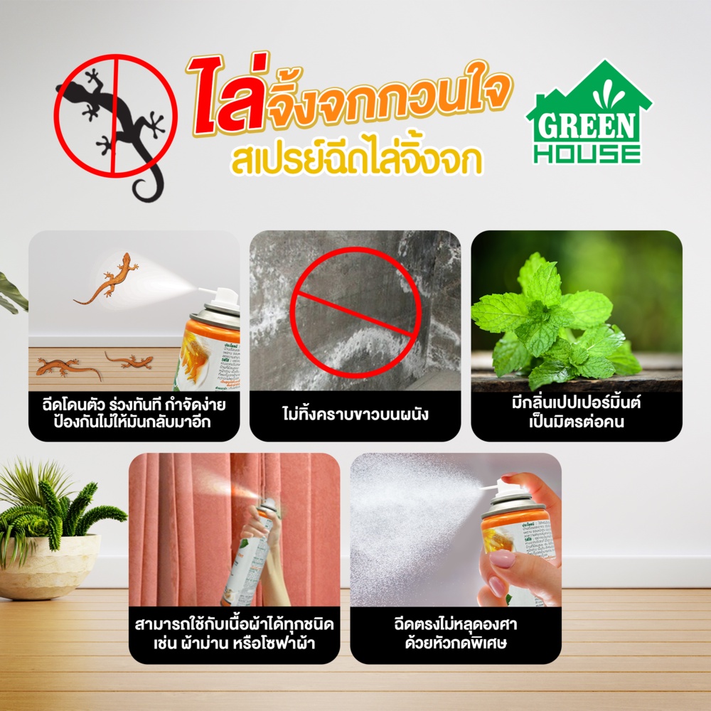 สเปรย์ ไล่จิ้งจก ตุ๊กแก 300 มล. หัวฉีดรุ่นพิเศษ สูตรธรรมชาติ GREEN HOUSE LIZARD REPELLENT SPRAY