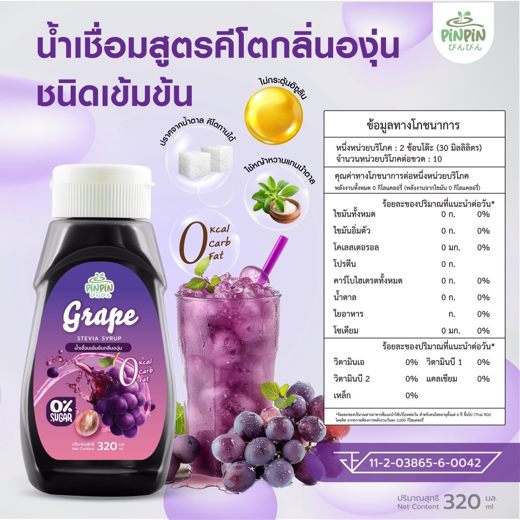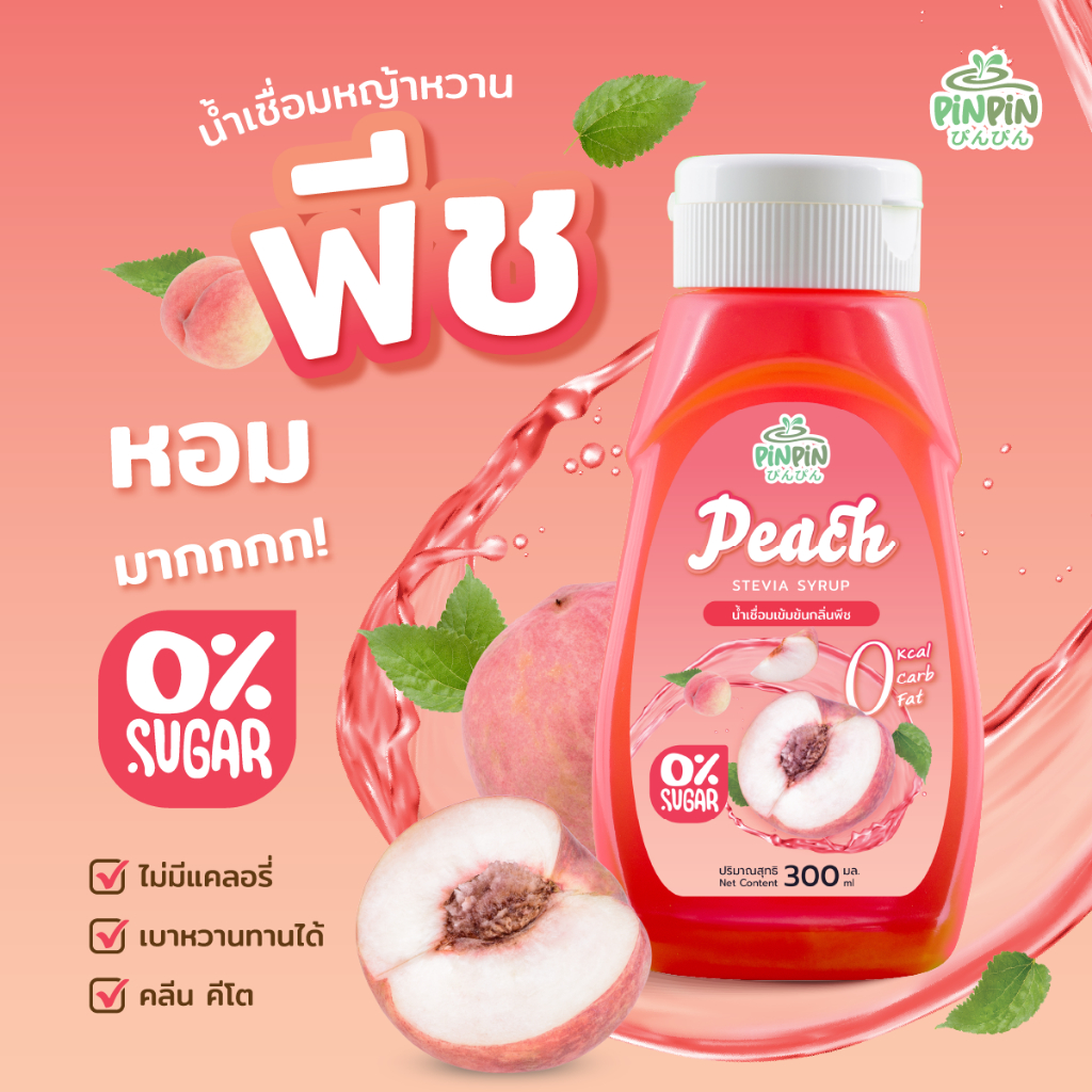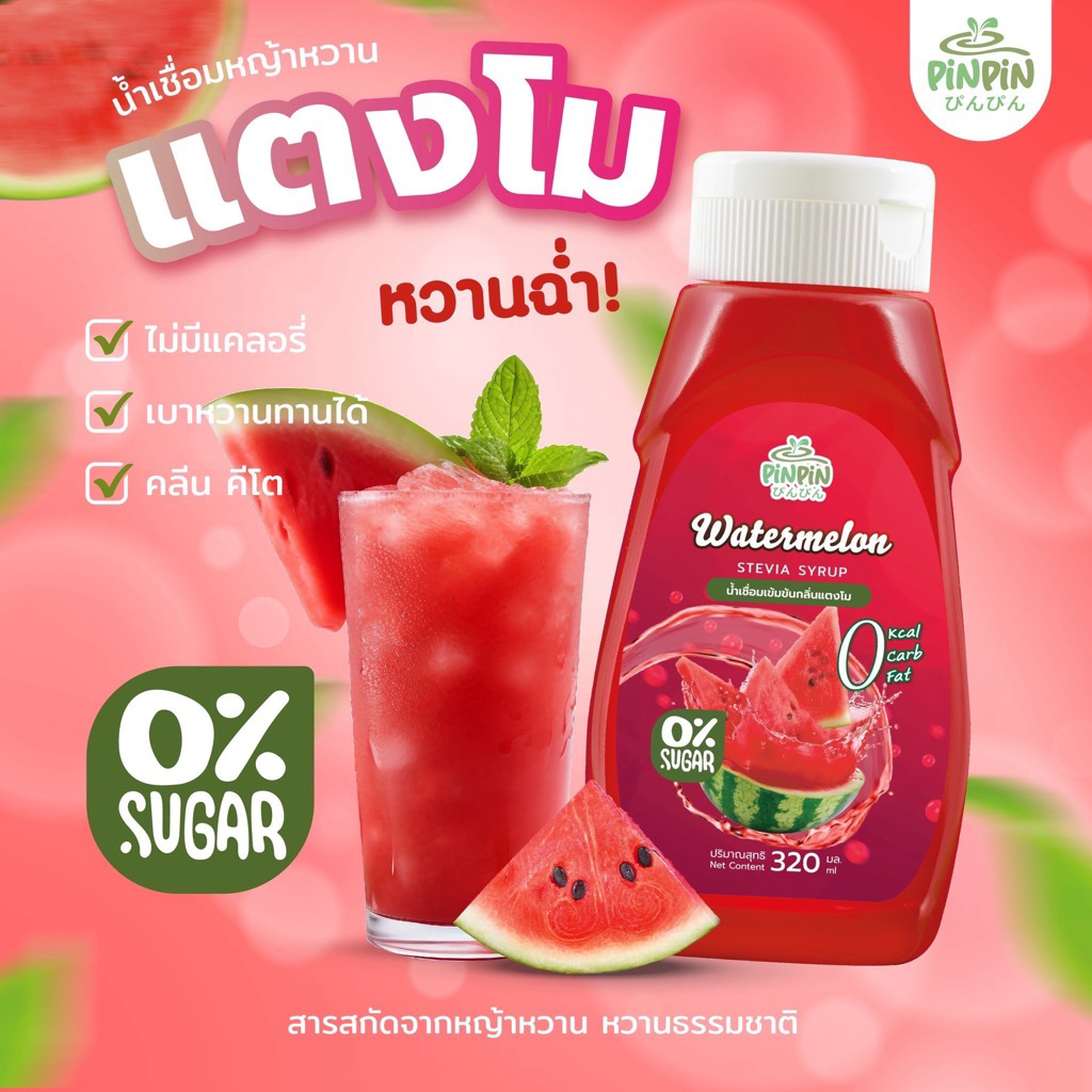 PinPinไซรัปหญ้าหวาน 19 รสชาติ ไซรัปคีโต 0 kcal ไม่มีน้ำตาล