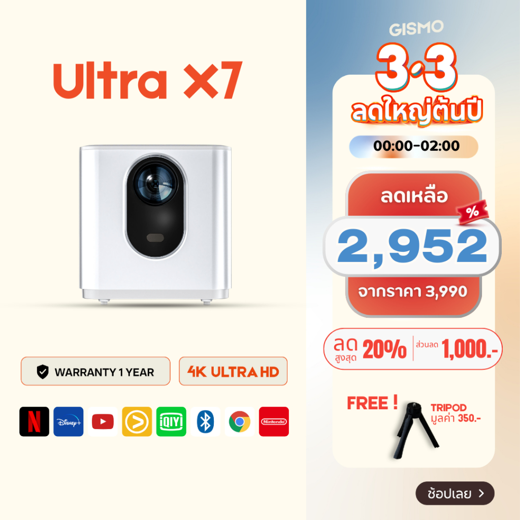 3.3 GISMO📍 Ultra X7 MAX 4K Projector โปรเจคเตอร์ มินิโปรเจคเตอร์ Built-In Andriod 9.0 HIFI 5W