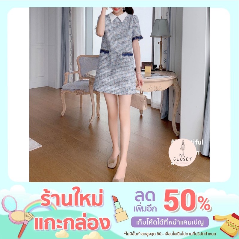 ลดเหลือ 210.- ใส่โค้ด INC1SM1 + โค้ดหน้าร้าน เดรสไหมพรมแขนสั้น ปกเชิ้ต แต่งพู่ช่วง แขนและกระเป๋าหลอก ผ้าเนื้อนิ่ม
