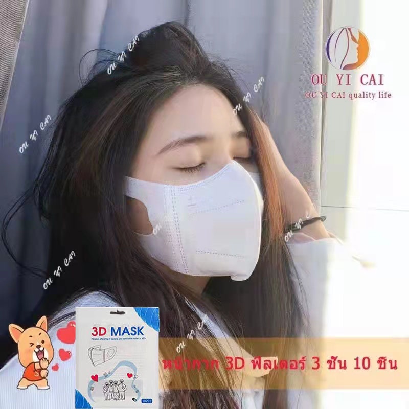 OUYICAI หน้ากากผู้ใหญ่ หน้ากาก หน้ากากอนามัย 3D ฟิลเตอร์ 3 ชั้น 10ชิ้น