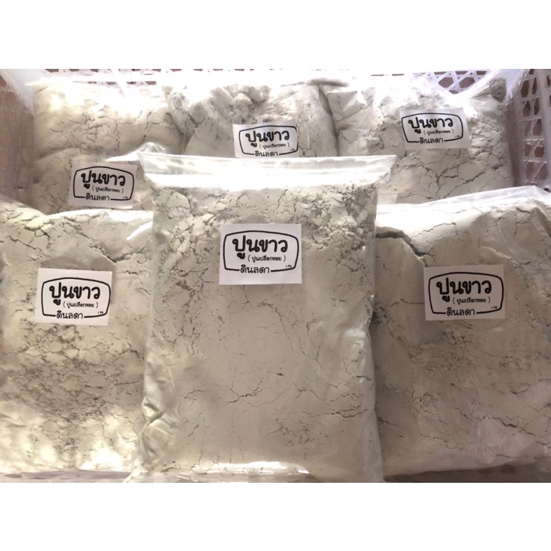 ปูนขาว (ปูนเปลือกหอย) แบ่งบรรจุขนาดถุงละ 1 กิโลกรัม ร้านดินลดา