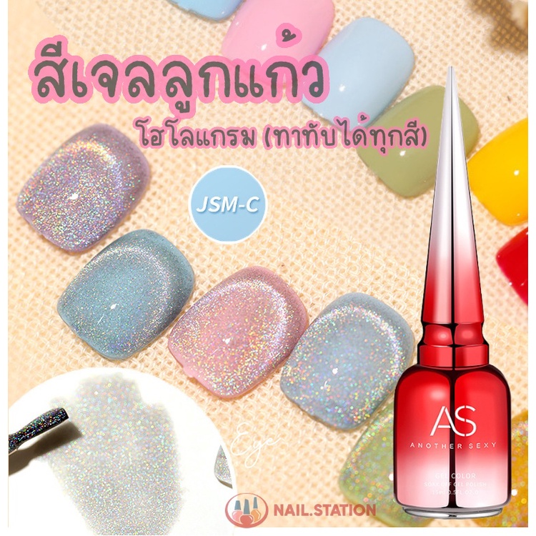 สีทาเล็บเจล AS โฮโลแกรม สีเจลแม่เหล็ก JSM-C สีทาเล็บเจล ลูกแก้ว ขวดแดง 15ml