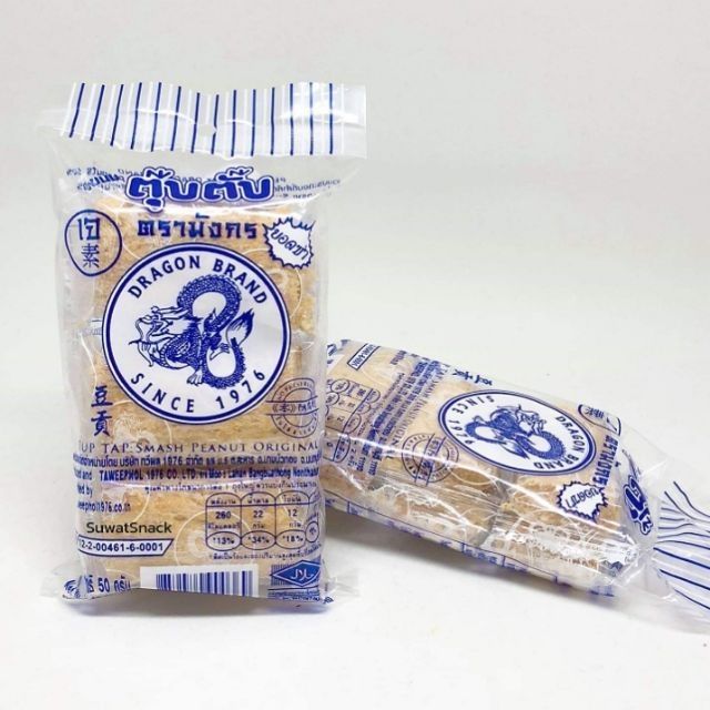 ขนมตุ๊บตั๊บดั้งเดิม 10 ห่อ (ขนาด50กรัม) ตรามังกร ขนมไทยโบราณ Crushed Peanuts Dragon Band ฮาลาล SWEET