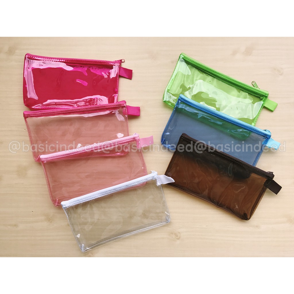 Basic Indeed กระเป๋าดินสอใส [size S] ทรงแบน กระเป๋าใส ใส่ดินสอเข้าสอบ หลากสี ออกใบกำกับภาษีได้