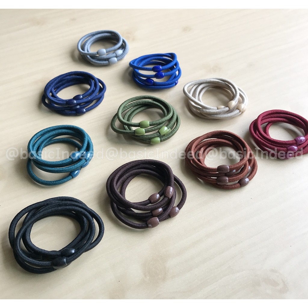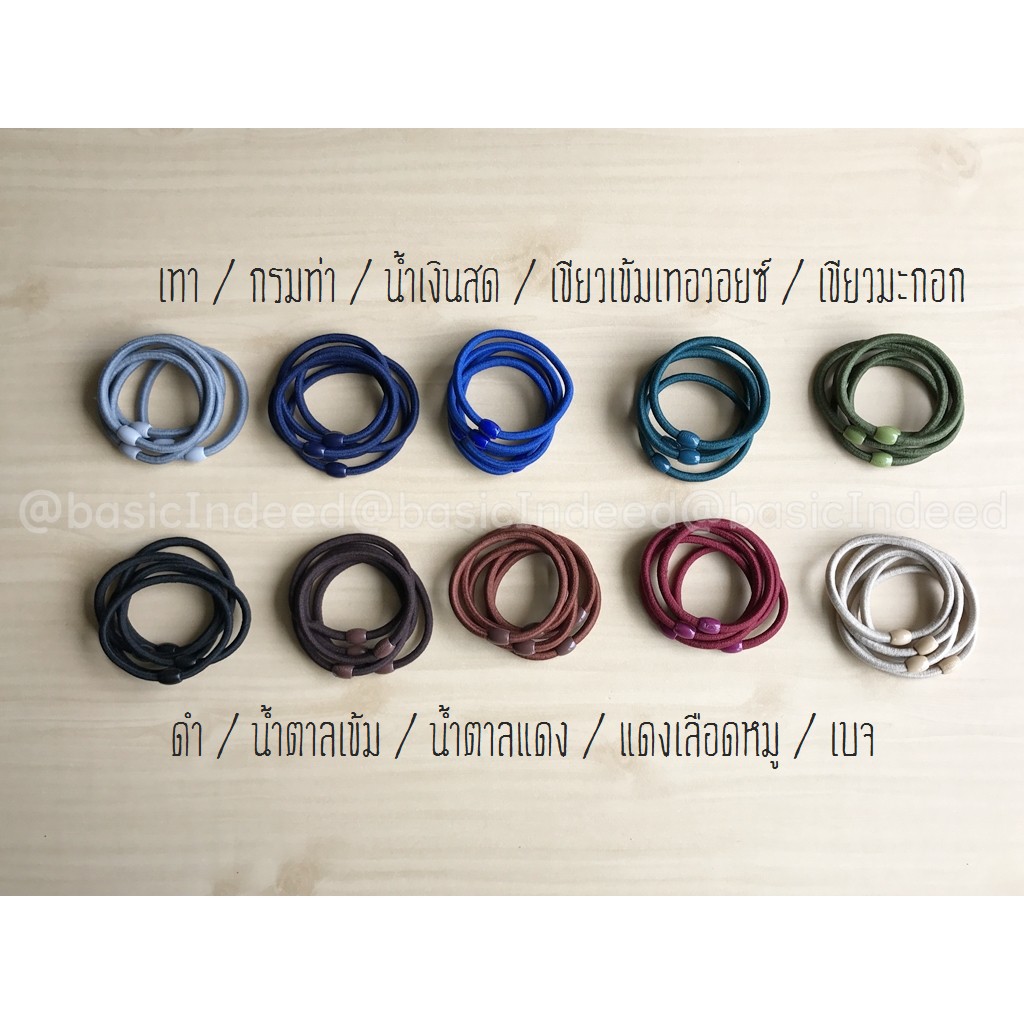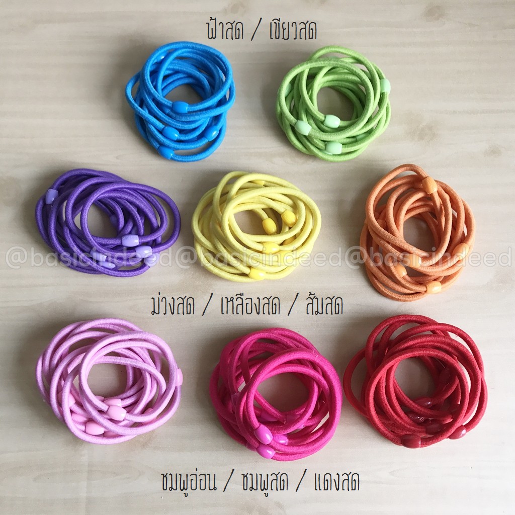 Basic Indeed [แพ็ค5เส้น/10เส้น] ยางรัดผมวงลูกปัดแบบเรียบ ๆ มีหลายสี ออกใบกำกับภาษีได้
